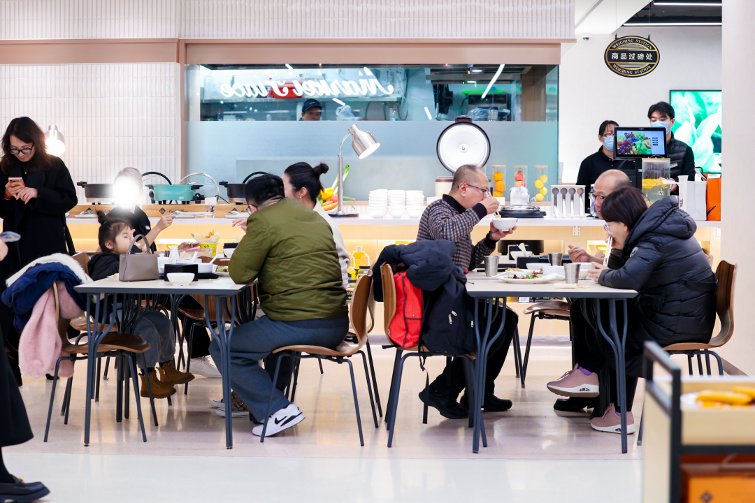 紧挨着精选超市的,是每天选用超市内新鲜优质食材和原料,现场现制的“表演厨房”,还是倡导少油少盐的健康饮食。