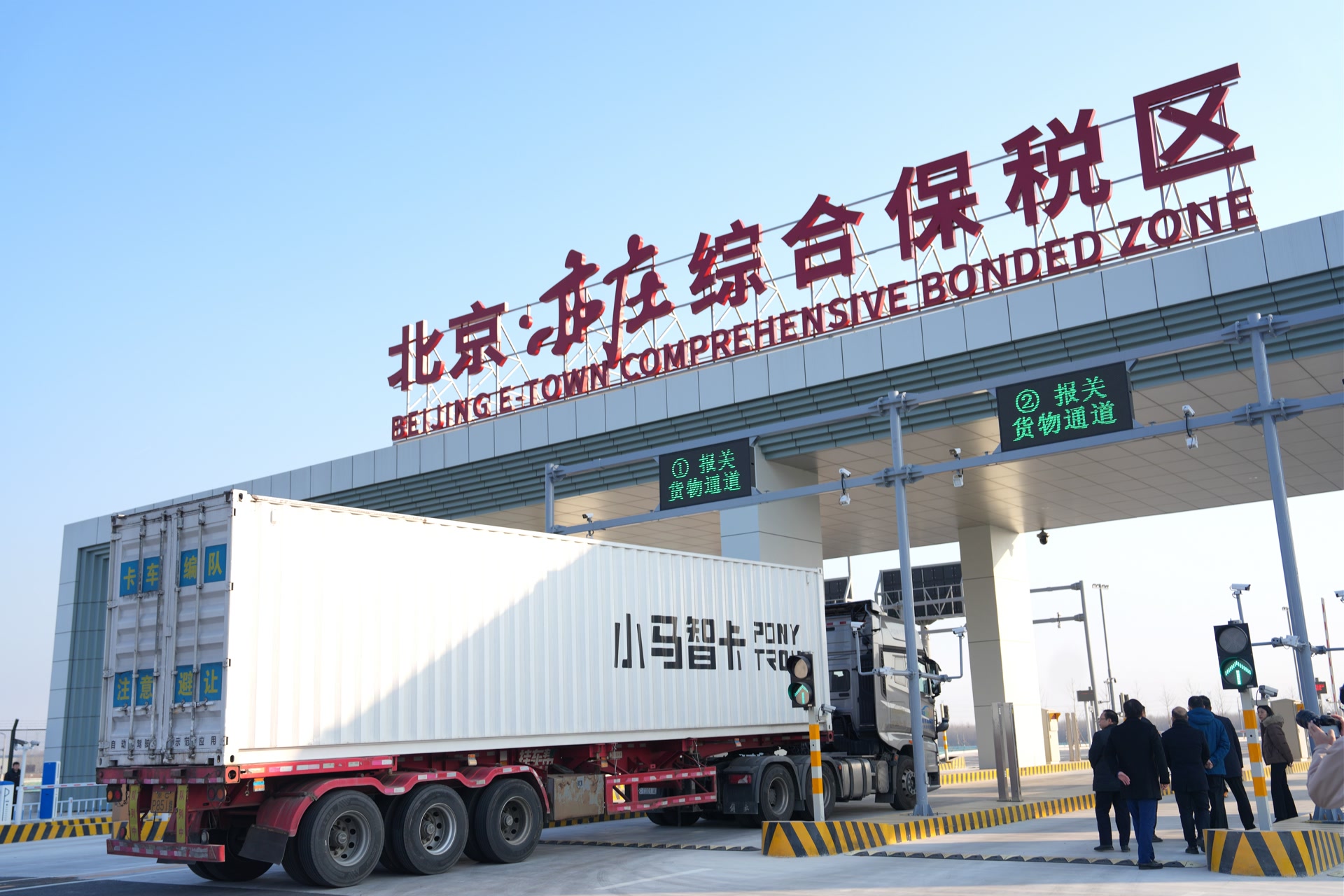 亦庄综保区首票首单货物为国外进口的阀门设备,货值70万美元,供应高精尖制造企业生产线使用。“从货物抵达卡口到完成通关,系统自动识别、实时核放,几乎‘无感’通过,大幅提升物流效率。”通关流程的智能化、自动化,给负责首票首单货物运输的小马智行自动驾驶卡车安全员霍康天留下深刻印象。