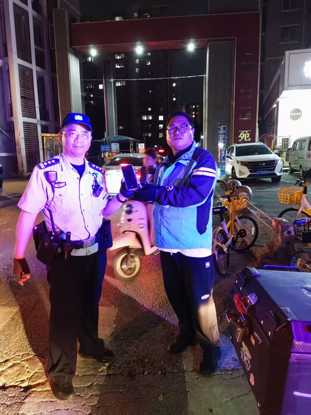 而这已不是杨记星第一次拾金不昧。此前在新发地富农门附近,他曾捡到一个黑色女士背包,打开后发现内含身份证、公交卡及两万多元现金。面对这笔意外“巨款”,他丝毫没有动心,反而“头皮发麻”,第一时间联系站长、录制视频说明情况,并迅速报警。在完成紧急配送后,他主动骑车赶回拾包地点,在民警见证下将背包完整归还给那位焦急万分的失主——一位来自山东的大姐。