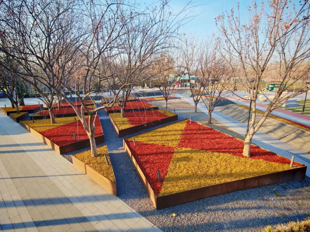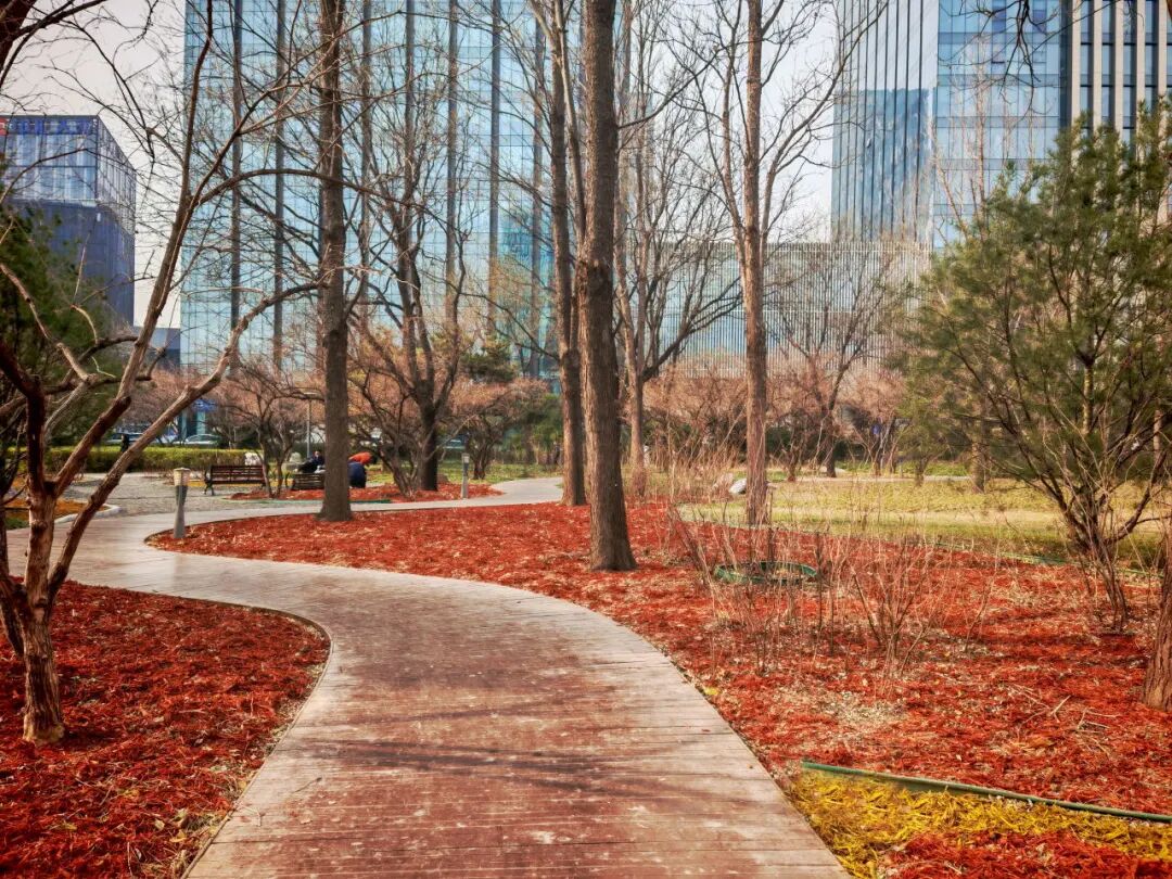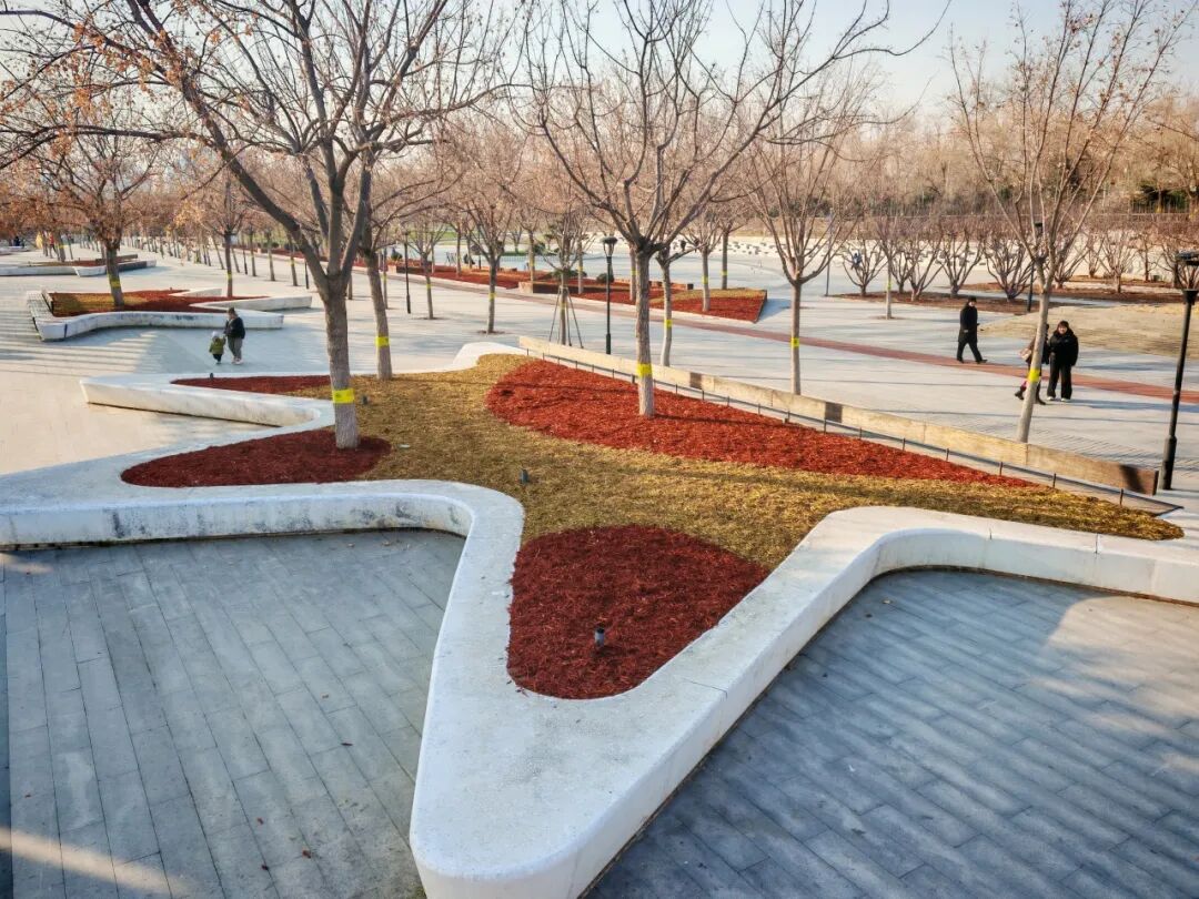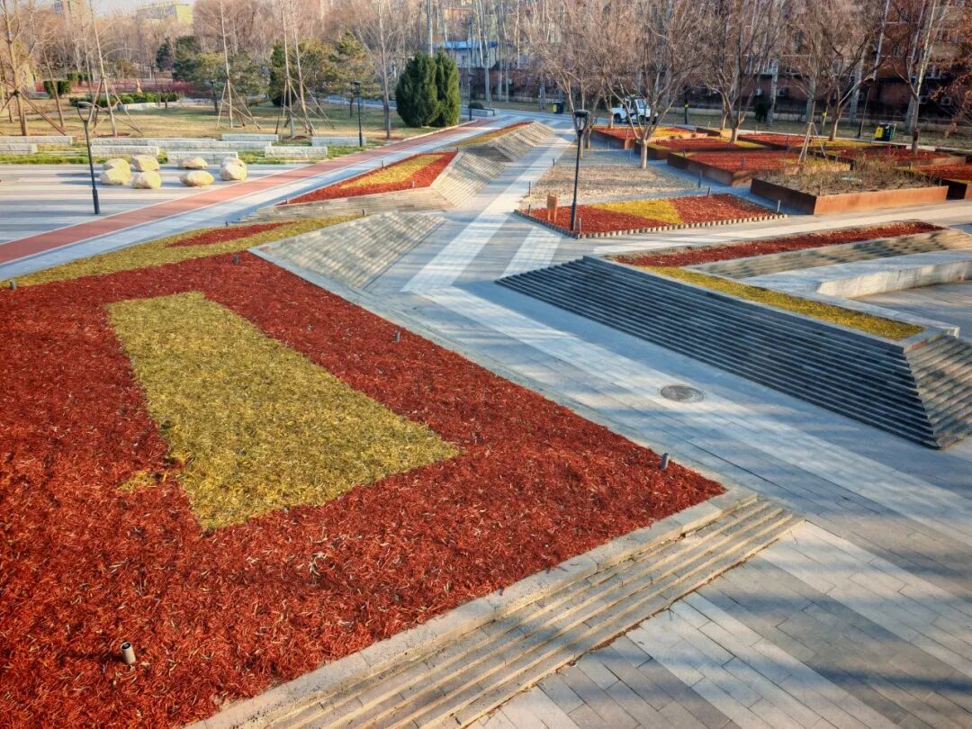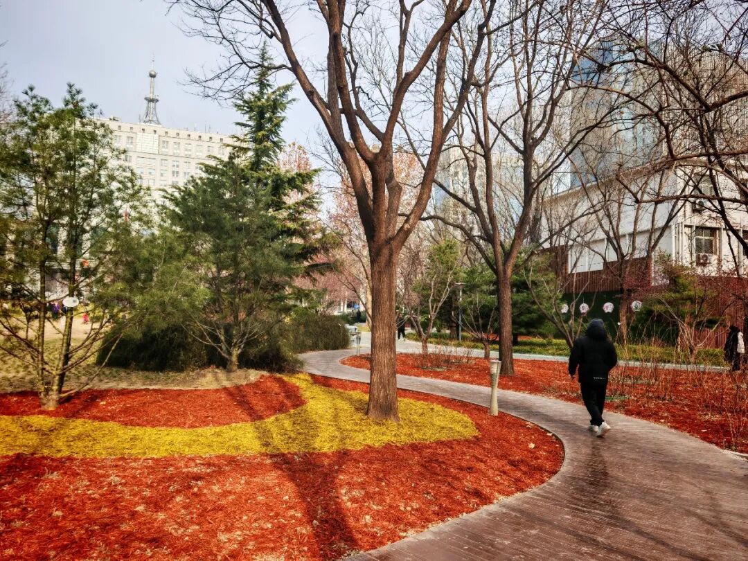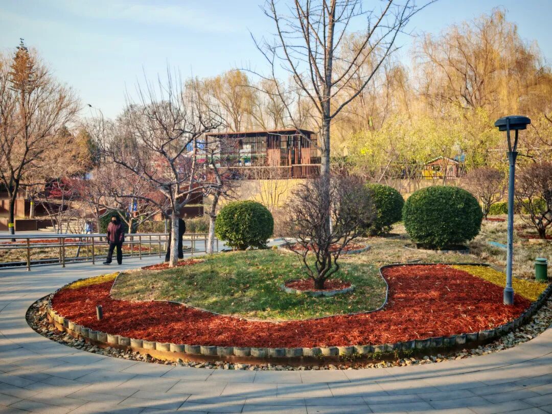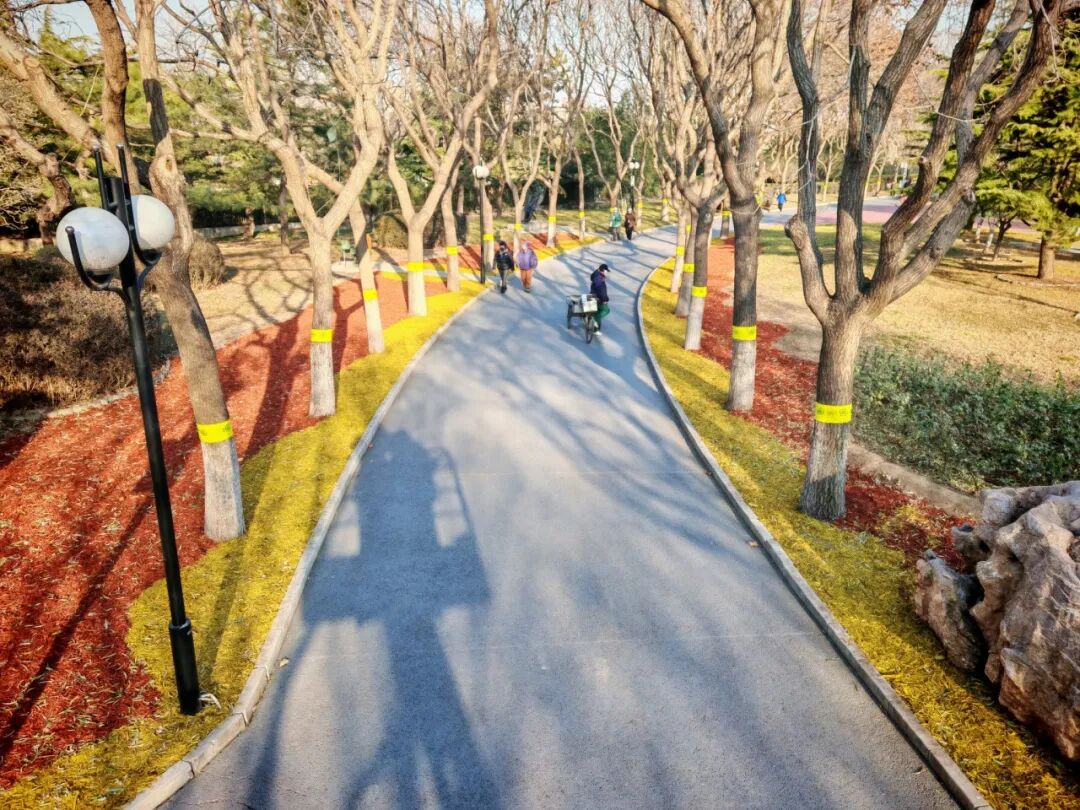 不仅如此,天然树皮还具有天然的吸附性,能有效抑制地表扬尘,从而进一步改善局部空气质量。这一“一材多效”的创新做法,不仅精准满足了植物冬季养护的需求,更从景观美化与环境净化两个维度,同步提升了公园的整体品质,为市民在冬日里营造出一个更为舒适、健康且宜人的公共休闲空间。