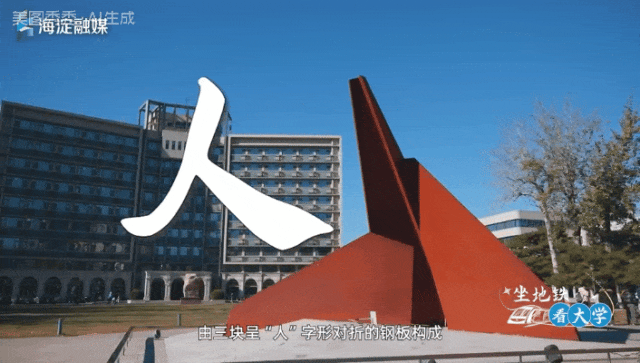 在人大,有一座《新路》雕塑,由三块呈“人”字形对折的钢板构成,环绕雕塑,从每个角度都能看出“人”字。三个部分相互支撑、环绕上升,共同构成一个大写的“人”字,也形象地构成一个“众”字。