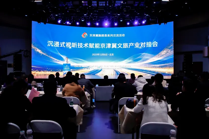 12月8日下午,由北京市广电局、天津市广电局、河北省广电局、北京市丰台区委区政府指导,中国(京津冀)广播电视媒体融合创新中心主办的京津冀融媒荟系列交流活动之一“沉浸式视听技术赋能京津冀文旅产业对接会”在南中轴国际文化科技园xR云演艺中心举办。对接会以政策为引、以技术为桥、以案例为鉴,破解行业痛点,共创文旅新生态,为区域文旅高质量发展注入强劲动能。