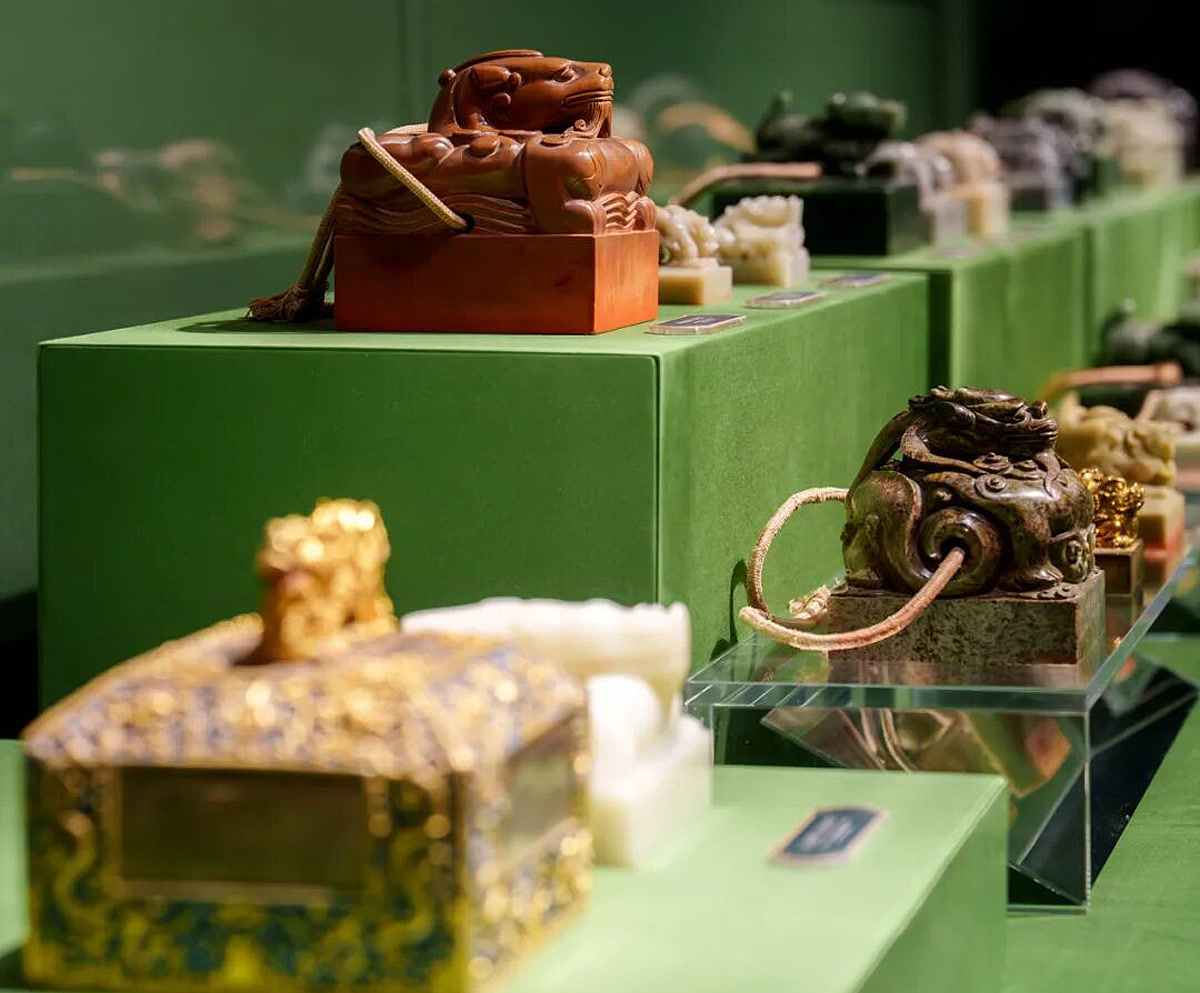宝玺不仅是皇权与地位的象征,更是国家政务运行的核心信物。清代宝玺体系在乾隆初年得以系统整理,乾隆皇帝将前代御宝重新考证排序,最终确定二十五方为法定数目,成为清代典章制度的重要见证。这些宝玺平日密藏于宝盝之中,陈列于紫禁城交泰殿御座周边,此次展览是它们首次集体走出深宫,与广大观众见面。