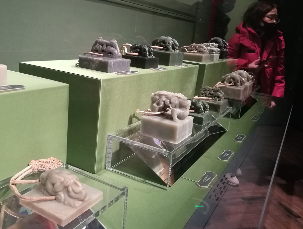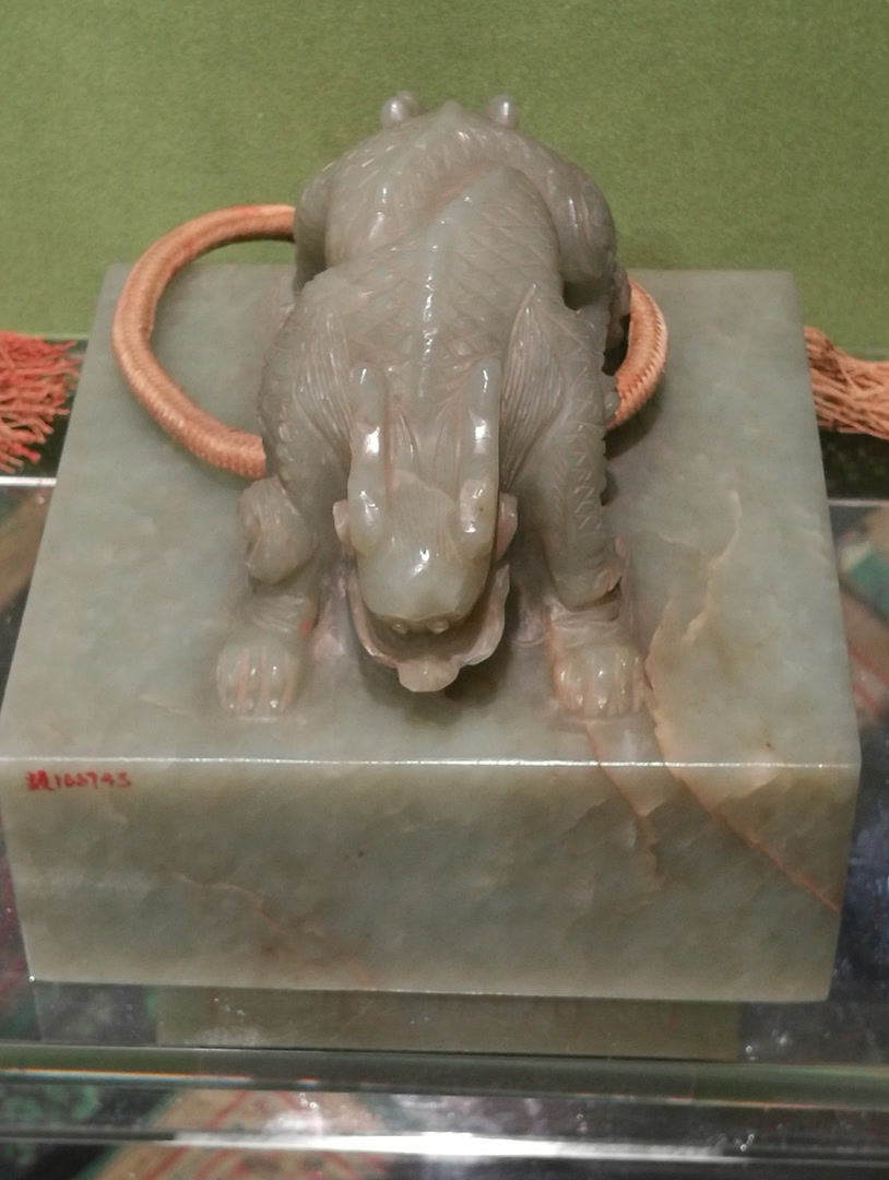 此次展出的宝玺在材质与纹饰上集中体现了中国传统文化精髓。玺材多选用被誉为“玉中之王”的和田玉,其温润细腻的质感,契合了玉文化中象征君子品德的美学传统。玺身雕刻的龙纹图案,则彰显了龙作为中华民族图腾与皇权象征的深厚寓意,整体设计融合了对吉祥尊贵的追求与皇家威仪的展现。