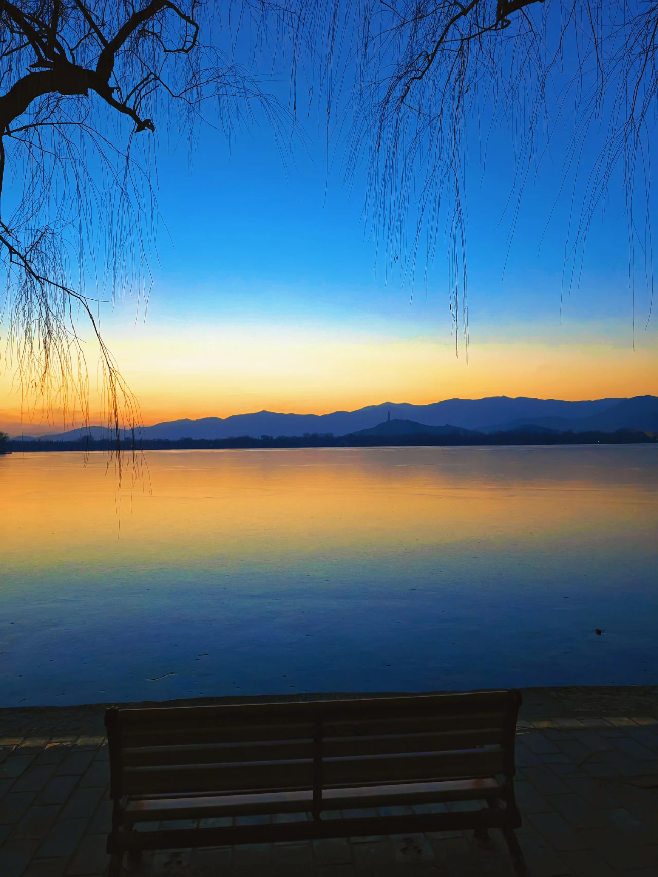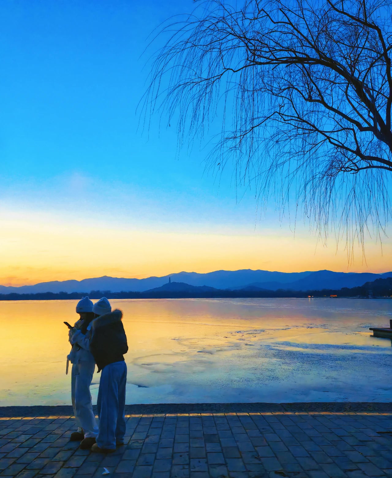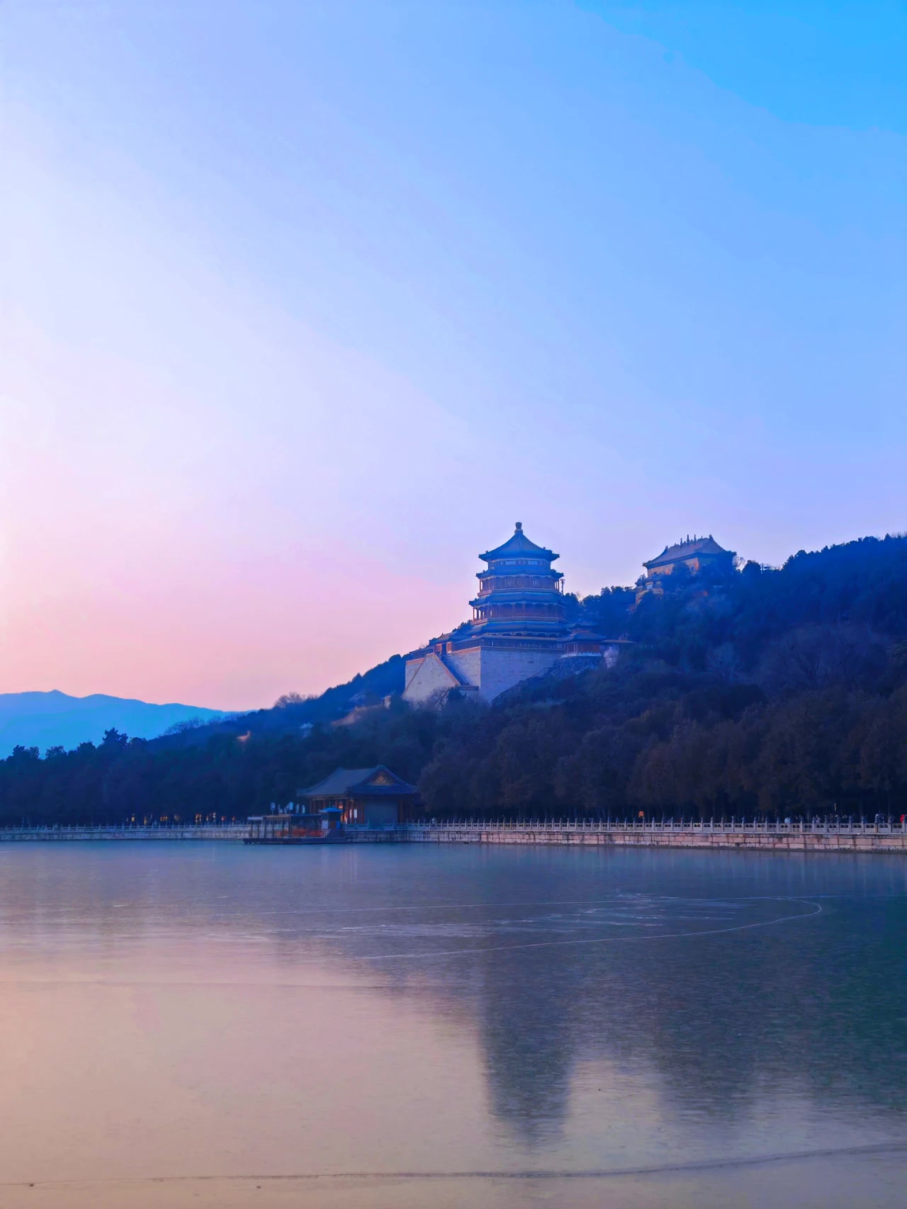 冬日颐和园的“蓝调时刻”,是一种极致的浪漫