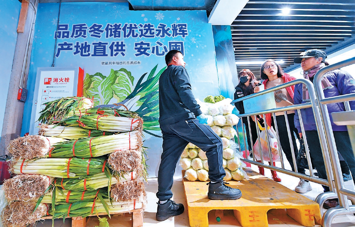 北青报记者近日走访发现,今年冬储菜价格亲民,大白菜每斤不到一元,大葱每斤不足两元,品类更丰富。除经典的大白菜、大葱外,永辉、物美等超市新增冬储萝卜、土豆、沙地蜜薯等耐储蔬菜,为市民餐桌增添更多选择与暖意。