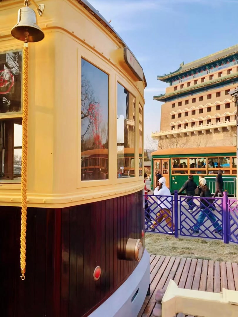刚踏入前门大街,铛铛车的铃声就撞进耳朵里, 车厢慢悠悠驶过青砖灰瓦,随手一拍就是国潮大片!