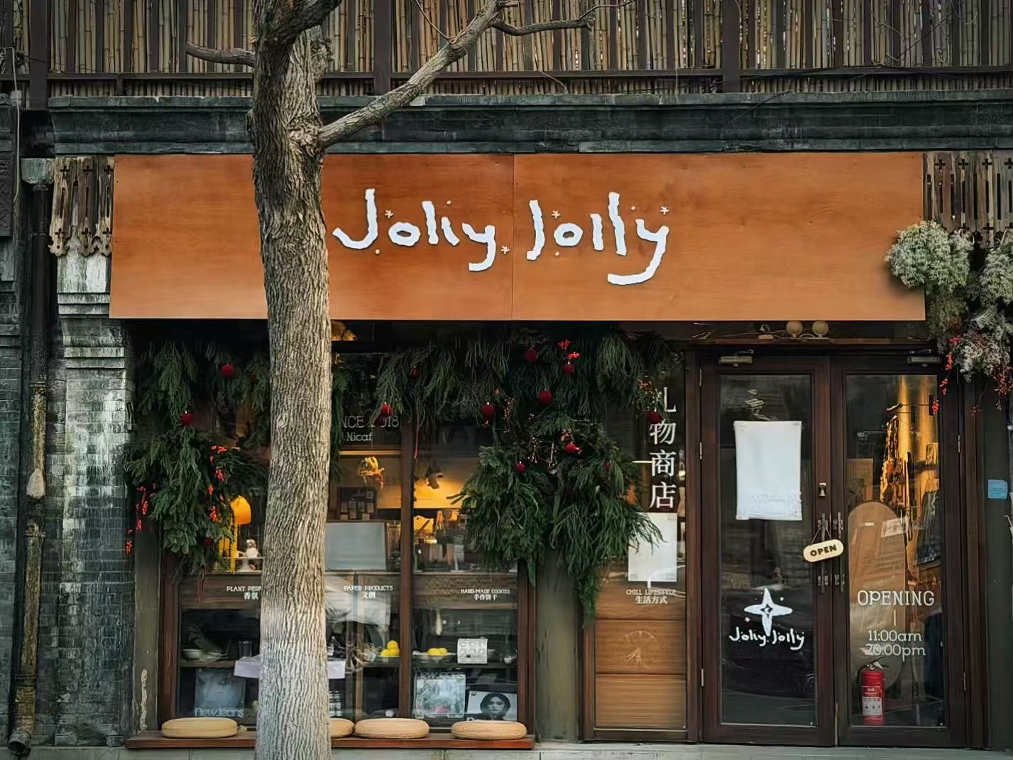 木质门扉的小店古朴别致,餐吧、酒吧、甜品店和老北京特色店铺穿插排布,逛累了可以随机挑选一家歇歇脚,盲选不踩雷。