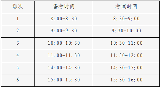 英语听说机考每天最多安排6场,每场考试时间约30分钟。考试具体安排如下: