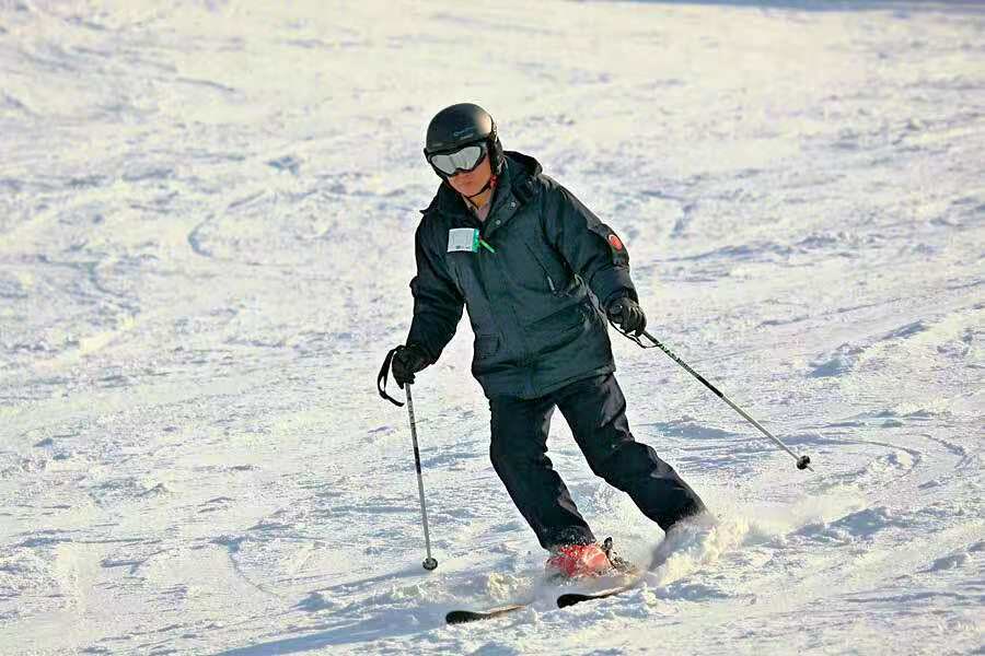 至于老人该选择单板还是双板,刘教练给出了明确建议:“双板对老人更友好、更稳,单板对核心力量和平衡要求更高,老年人会更容易摔跤。”路线方面,她建议老人把目标放在初级和中级雪道上,“这些雪道的强度已经足够了,不用追求速度或难度。”