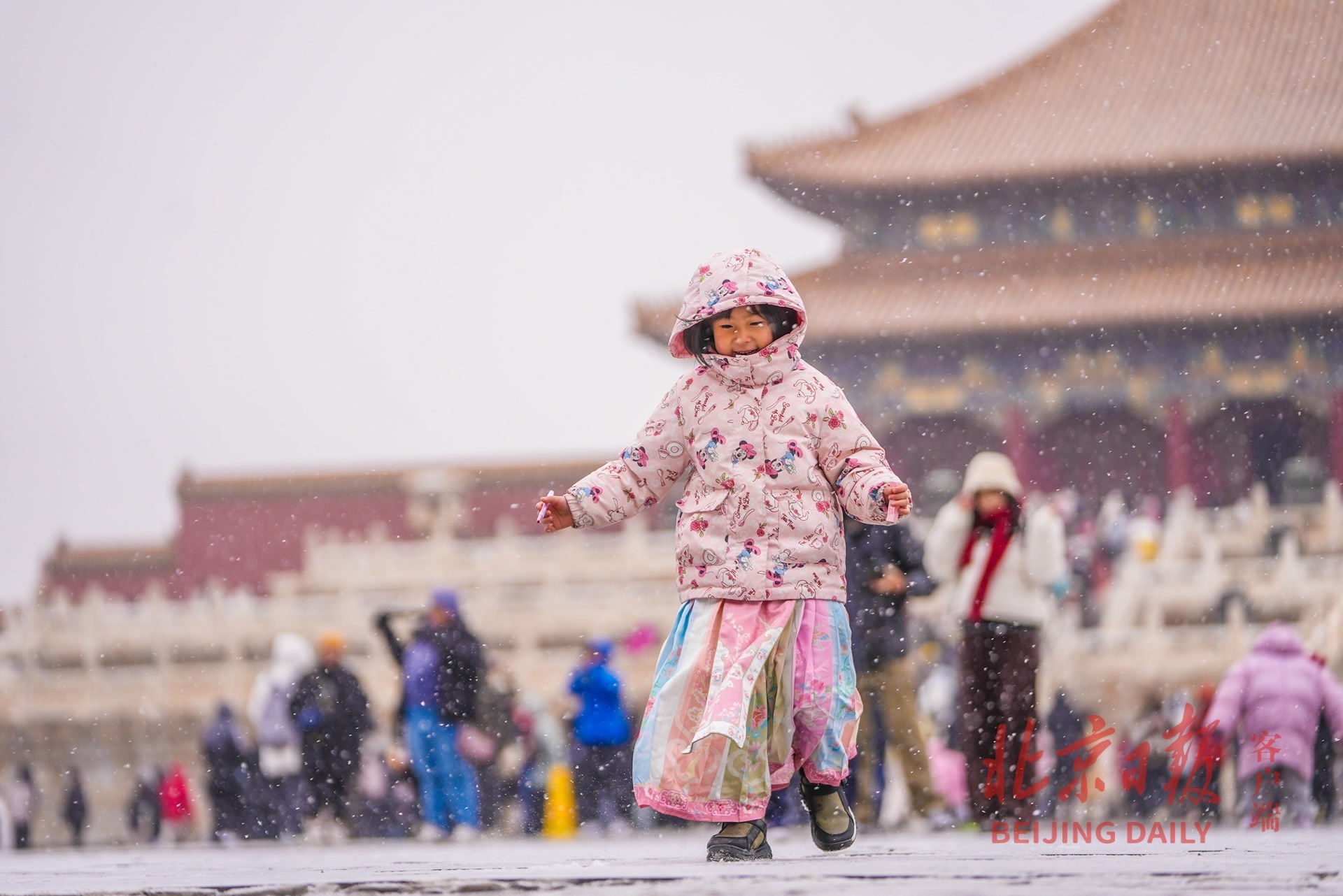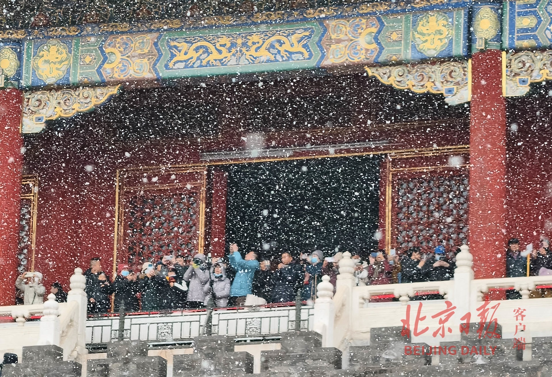 “真的下了”“下大了!快拍,能感觉到雪了”……纷纷洒洒的雪飘洒在故宫博物院,观众纷纷举起手机,找角度记录。
