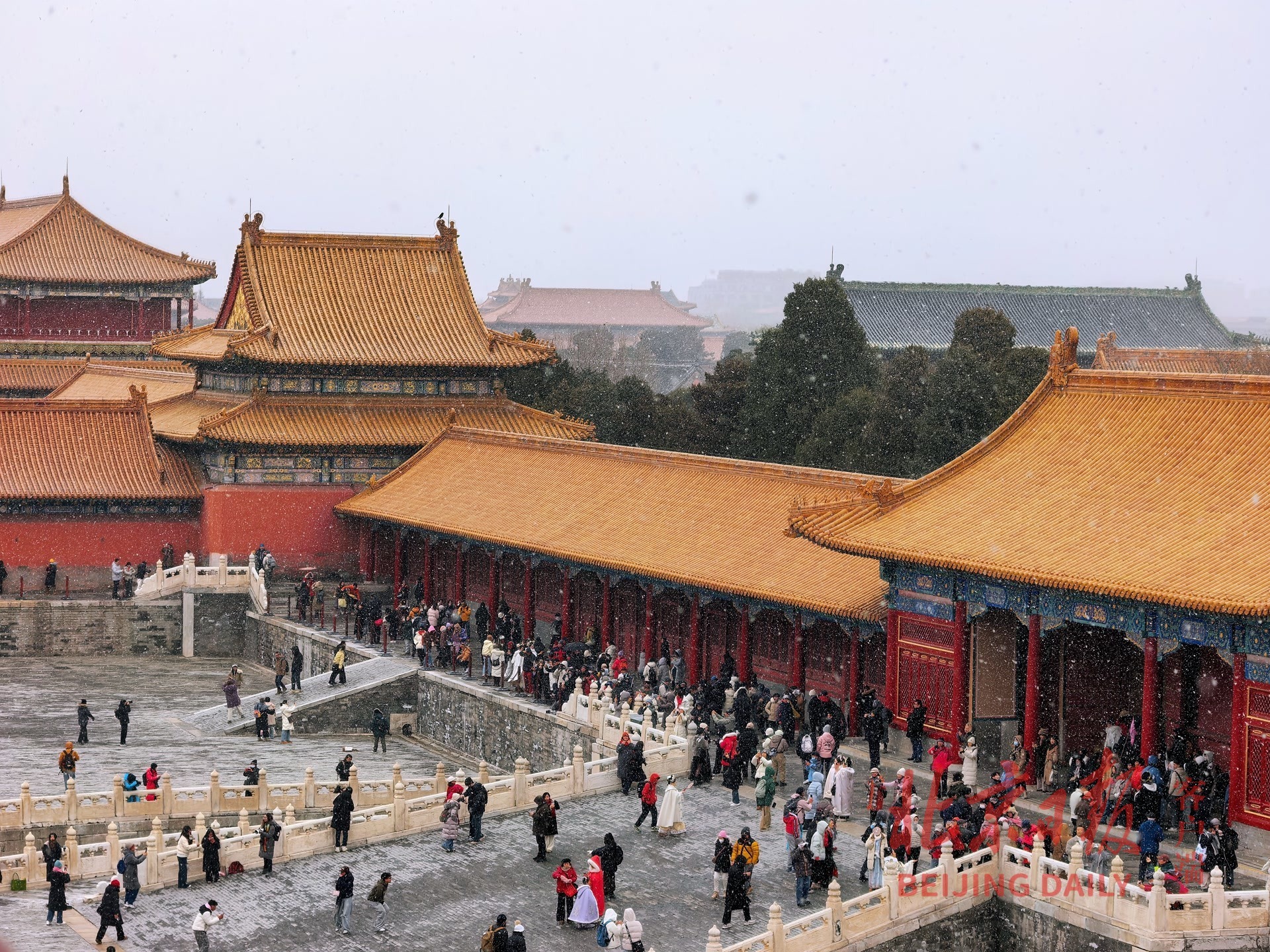 雪中的故宫,处处都像取景框。观众停下脚步,拍照、拍视频。层层叠叠的雪,映衬出深深浅浅的红……“北京雪景摄影大赛”已经在朋友圈、微博等平台开锣,冬日氛围感拉满。