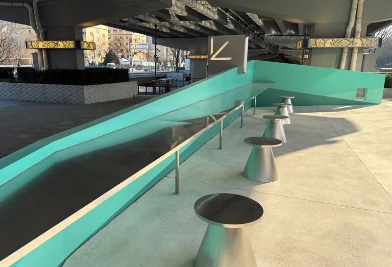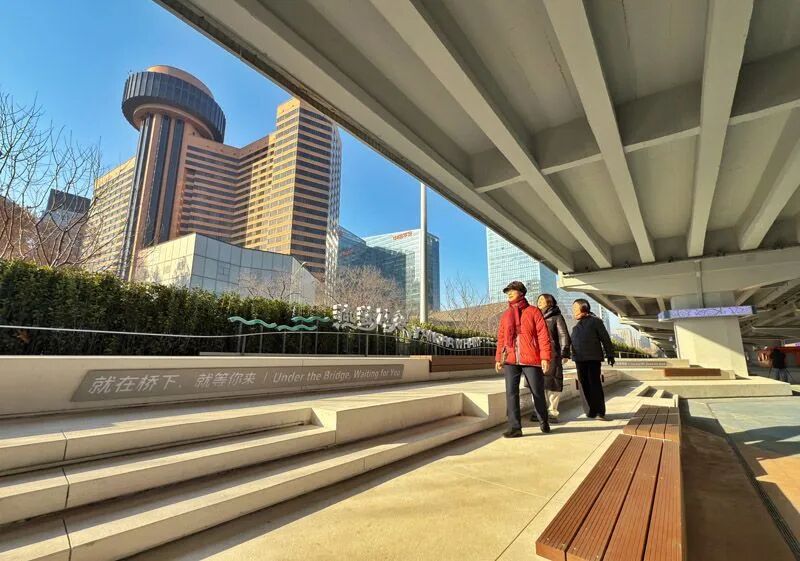 朝阳区拆除腾退桥下存在安全隐患的既有房屋与杂乱设施,释放闲置空间。结合亮马河风情水岸定位与市民需求,将其升级为复合型休闲空间。