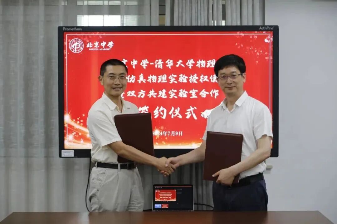 清华大学物理系与北京师范大学附属实验中学启动数智仿真物理实验室项目,双方共同签署合作备忘录。