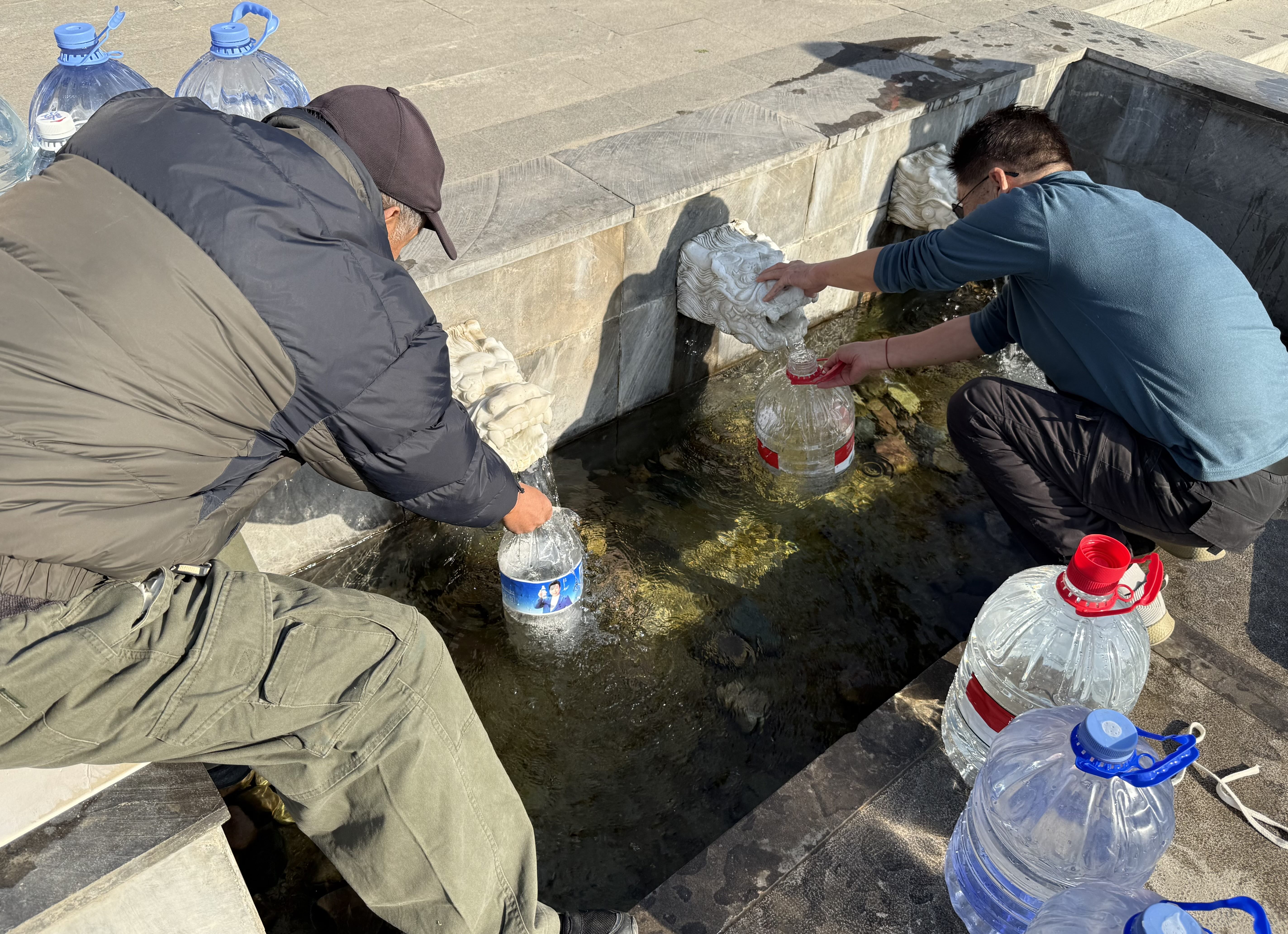 河北邢台的赵大爷在华庄泉便民取水点取泉水 刘玉洁摄