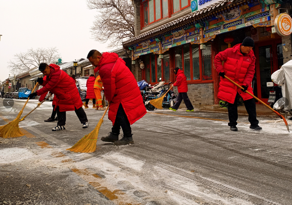 北京仍处于道路结冰橙色、暴雪蓝色预警信号中。房山、门头沟、密云暴雪黄色预警信号中,请注意防范。晚高峰降雪持续,路面易结冰,出行注意安全。