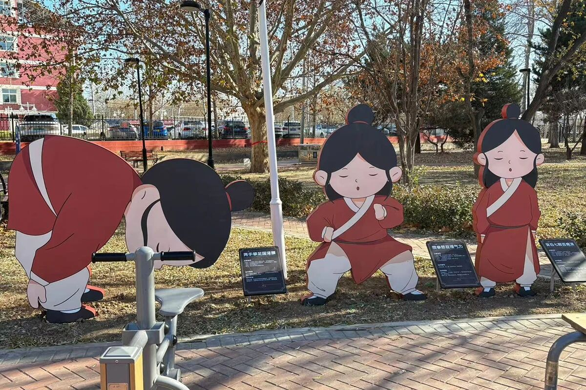 互动感十足是公园的又一大亮点,实现了“动+静”深度融合。八段锦广场的人物立牌清晰呈现八段锦的标准动作,方便中医爱好者进行锻炼;同时充分考虑全年龄段人群需求,生动有趣的“卡通人”设计,吸引孩子们纷纷跟着模仿动作,真正做到老少皆宜。