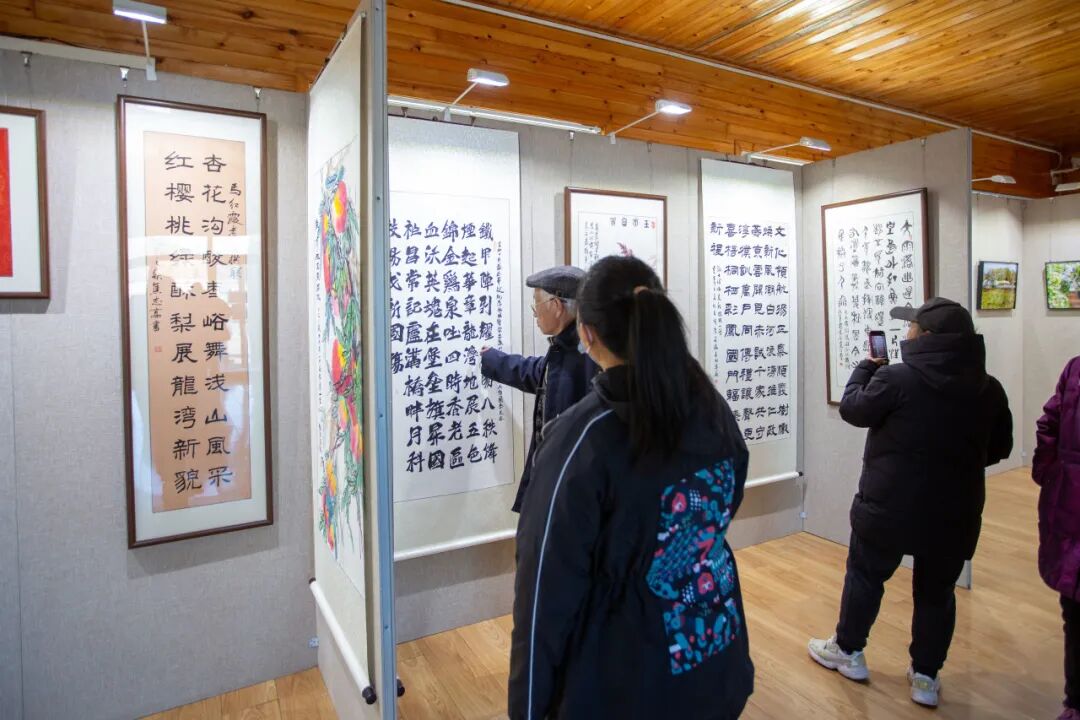 参展作品题材广泛、形式多样,创作者们以笔墨为媒、以镜头为眼,将对家乡的热爱、对时代的赞美融入作品之中,生动呈现了龙湾屯镇在生态建设、乡村治理、文化传承等方面的显著成效。展览现场,不少群众驻足观赏、交流心得,不时拿出手机记录下喜爱的作品,浓厚的文化氛围感染着每一位参观者。“这些作品都是我们身边人创作的,既接地气又有温度,让我真切感受到了家乡的变化和发展。”焦庄户村文化组织员说道。