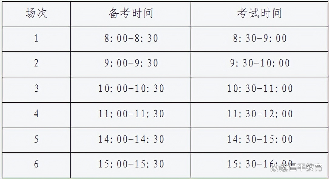 英语听说机考每天最多安排6场,每场考试时间约30分钟。考试具体安排如下: