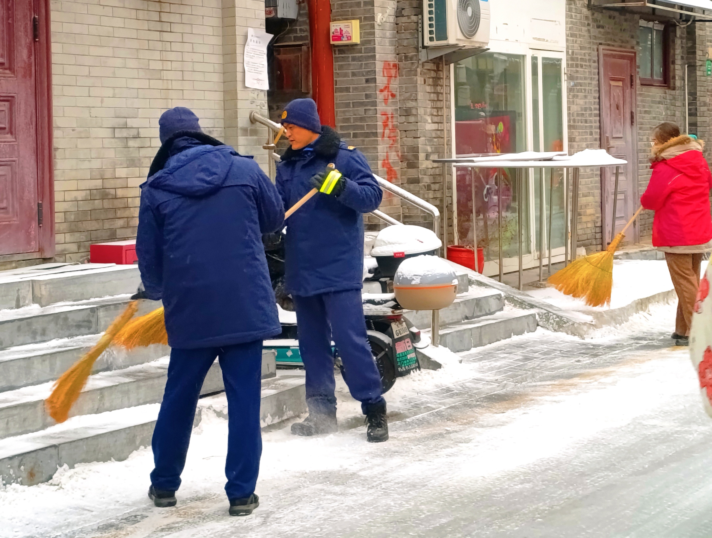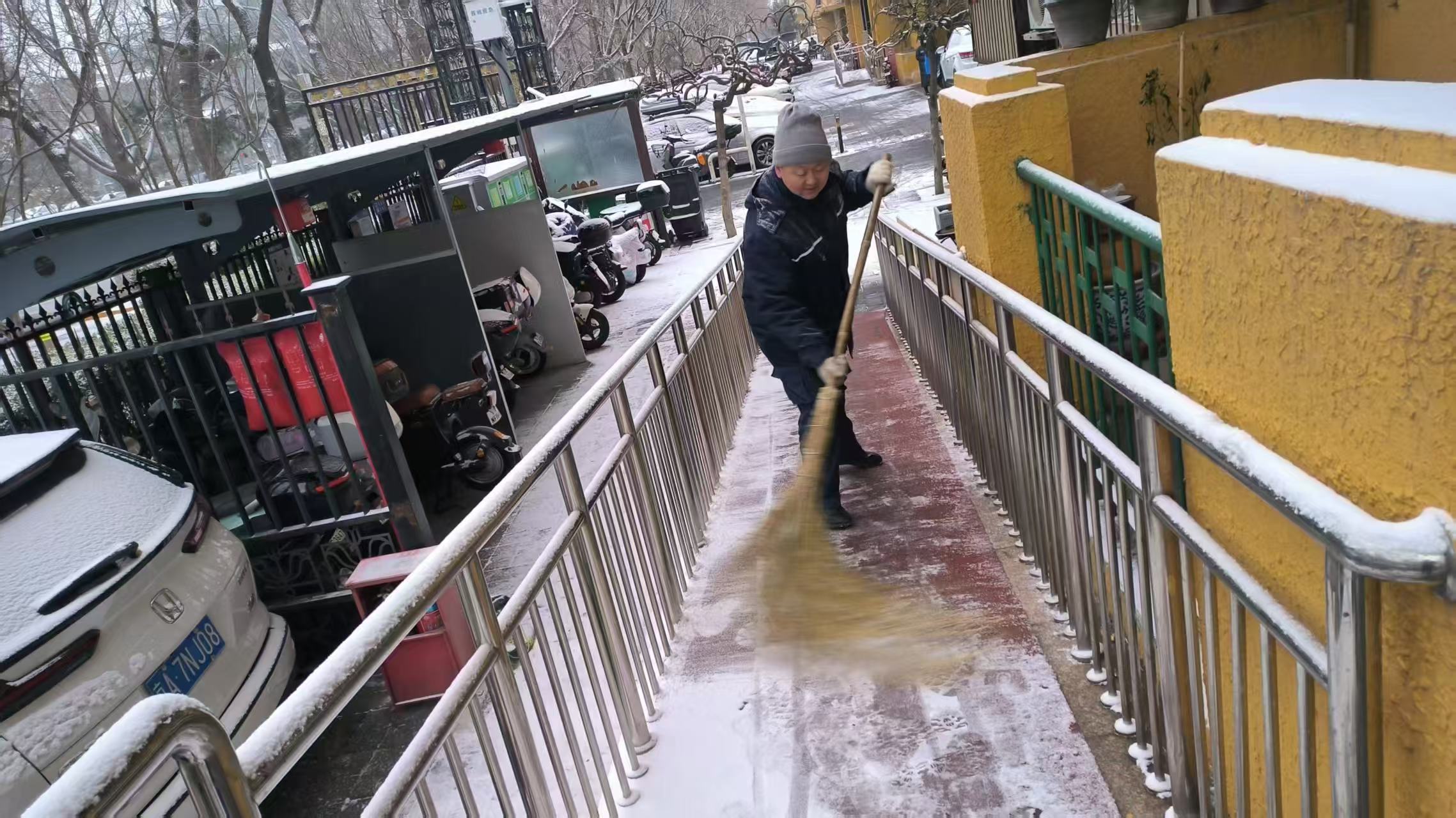 在部署会上,社区联合街道相关职能部门明确“两小时一清扫”的作业标准,发动党建协调委员会成员单位,商户门店,楼门院长,红蓝合伙人等多方力量,全力清扫积雪,确保行人通行安全。