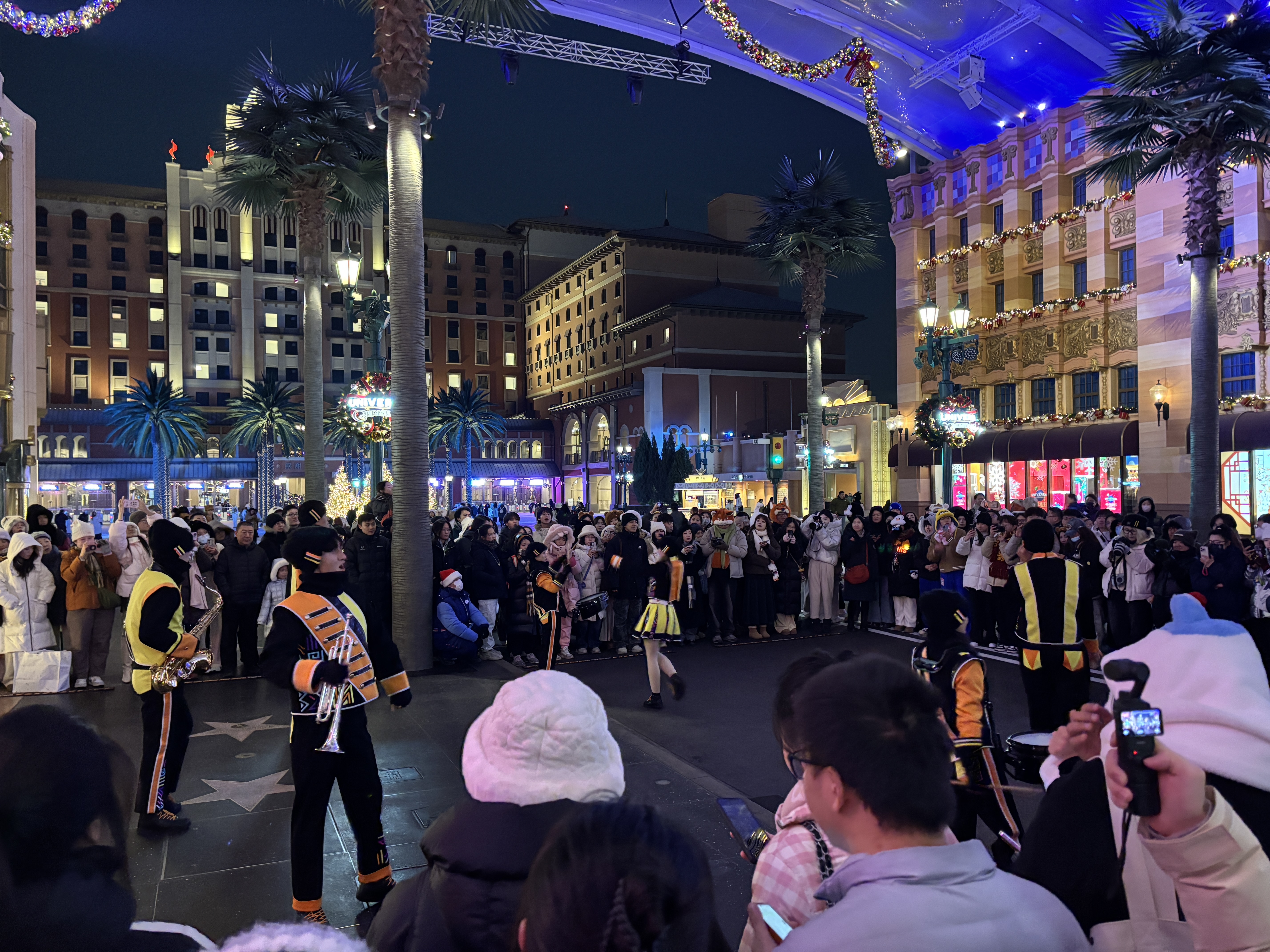 步入北京环球度假区,随处可见彩球、彩带、松枝等冬季元素。伴随缓缓飘落的雪花,好莱坞大道上的演出接连不断,舞者们身着冬季假日限定演出服尽情舞蹈、歌唱,引得观众纷纷举起手机拍照录像。“两天前看到天气预报说今天有雪,就立即订票来环球了,这氛围感直接拉满。”市民闻女士一边说道,一边跟随音乐舞动手臂。