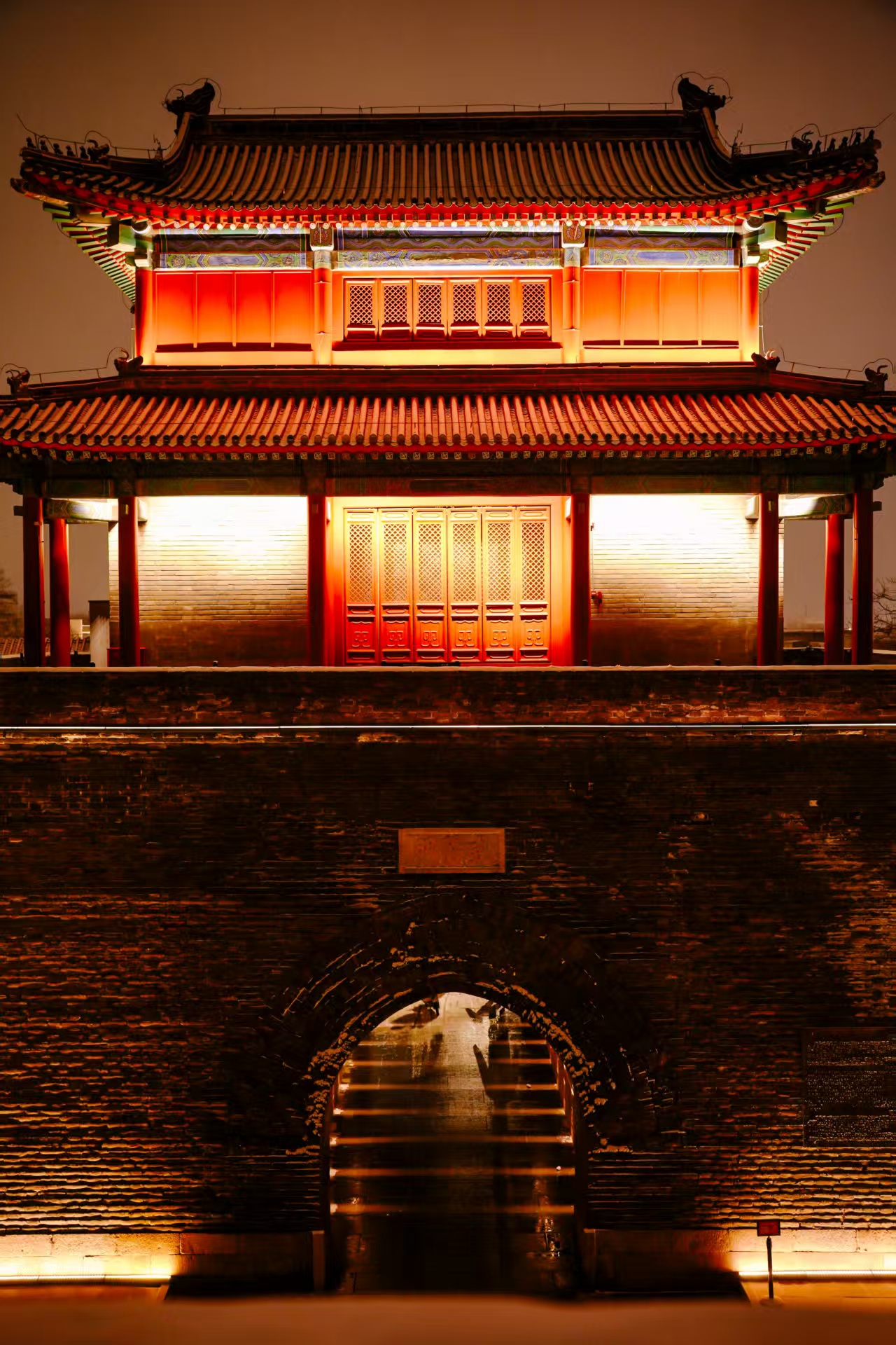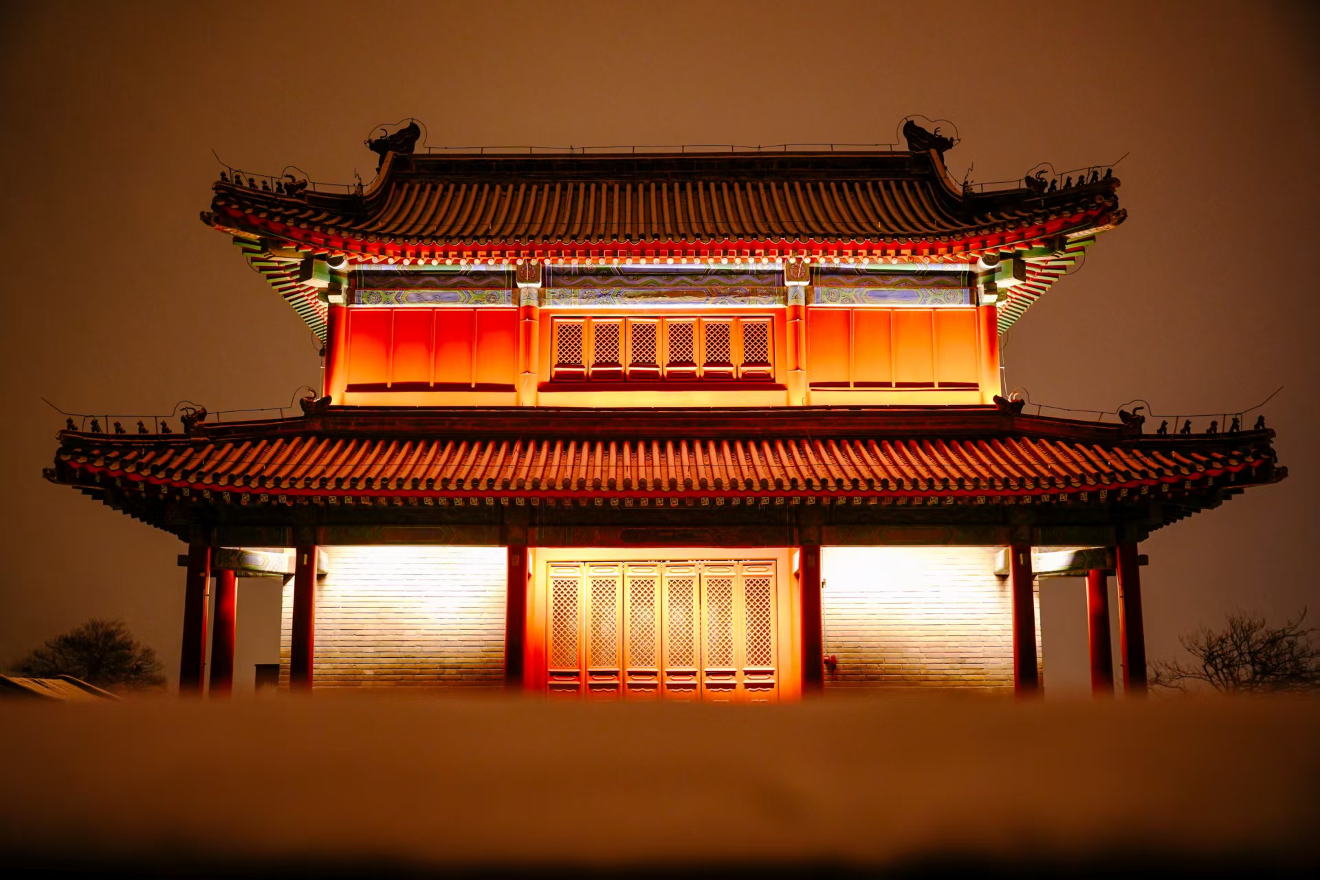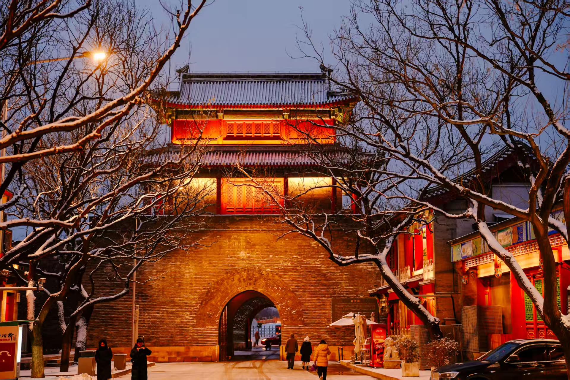 12月12日,北京初雪,夜晚,卢沟桥被点亮,银装素裹更添古韵与浪漫!
