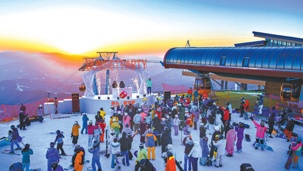 在崇礼,雪如意滑雪场举行“落日派对”,吸引了众多雪友参加。受访者供图