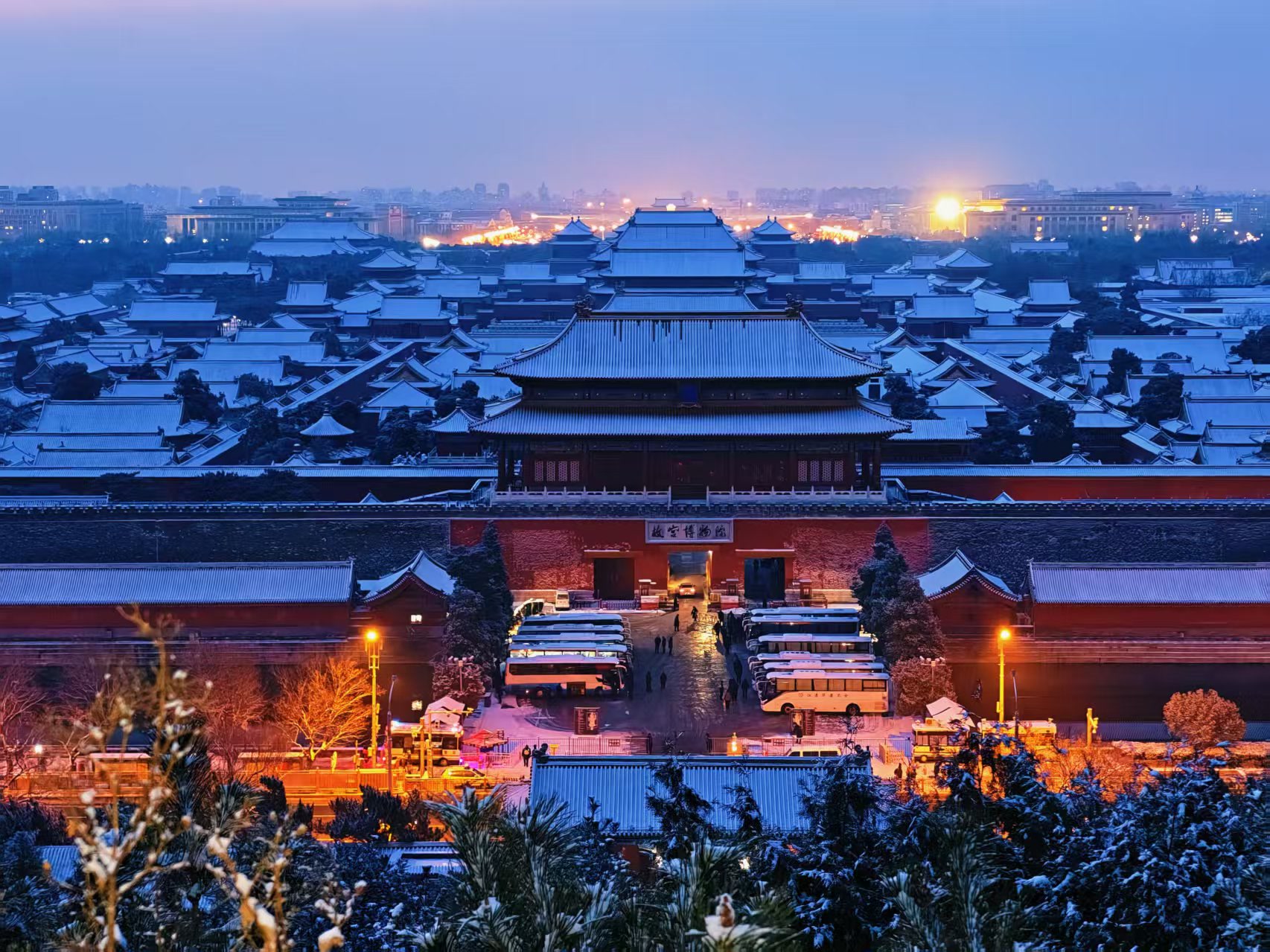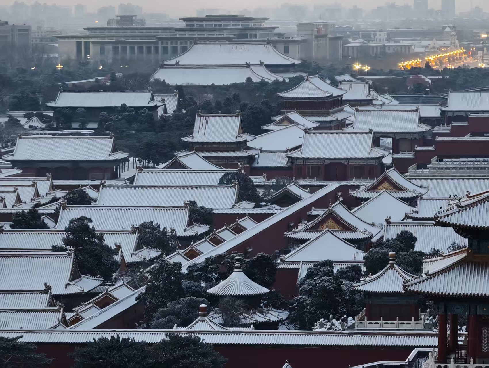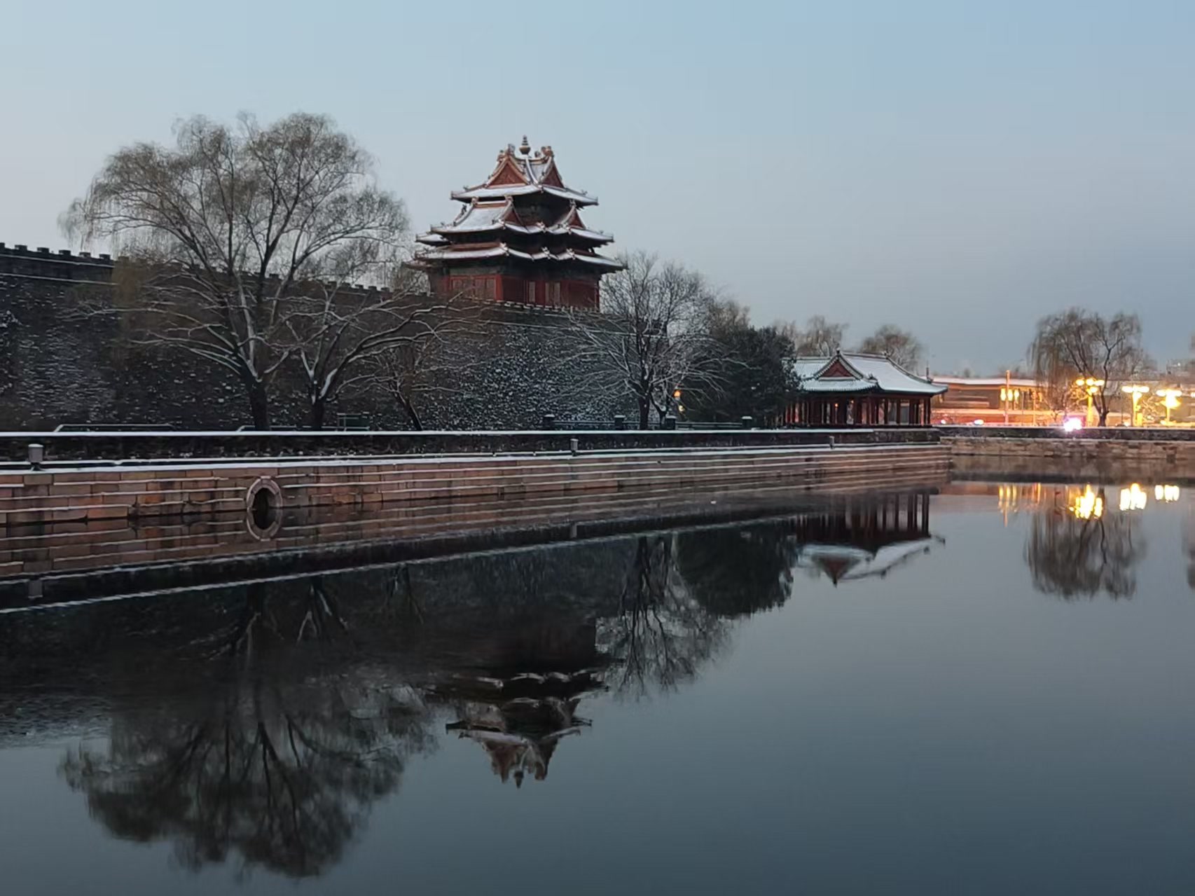 白雪覆红墙,雪后清晨故宫静谧肃穆