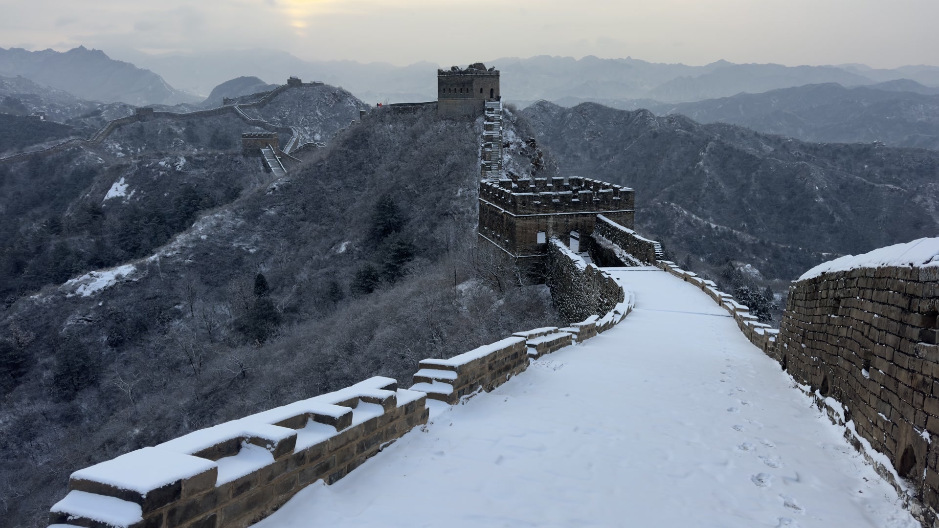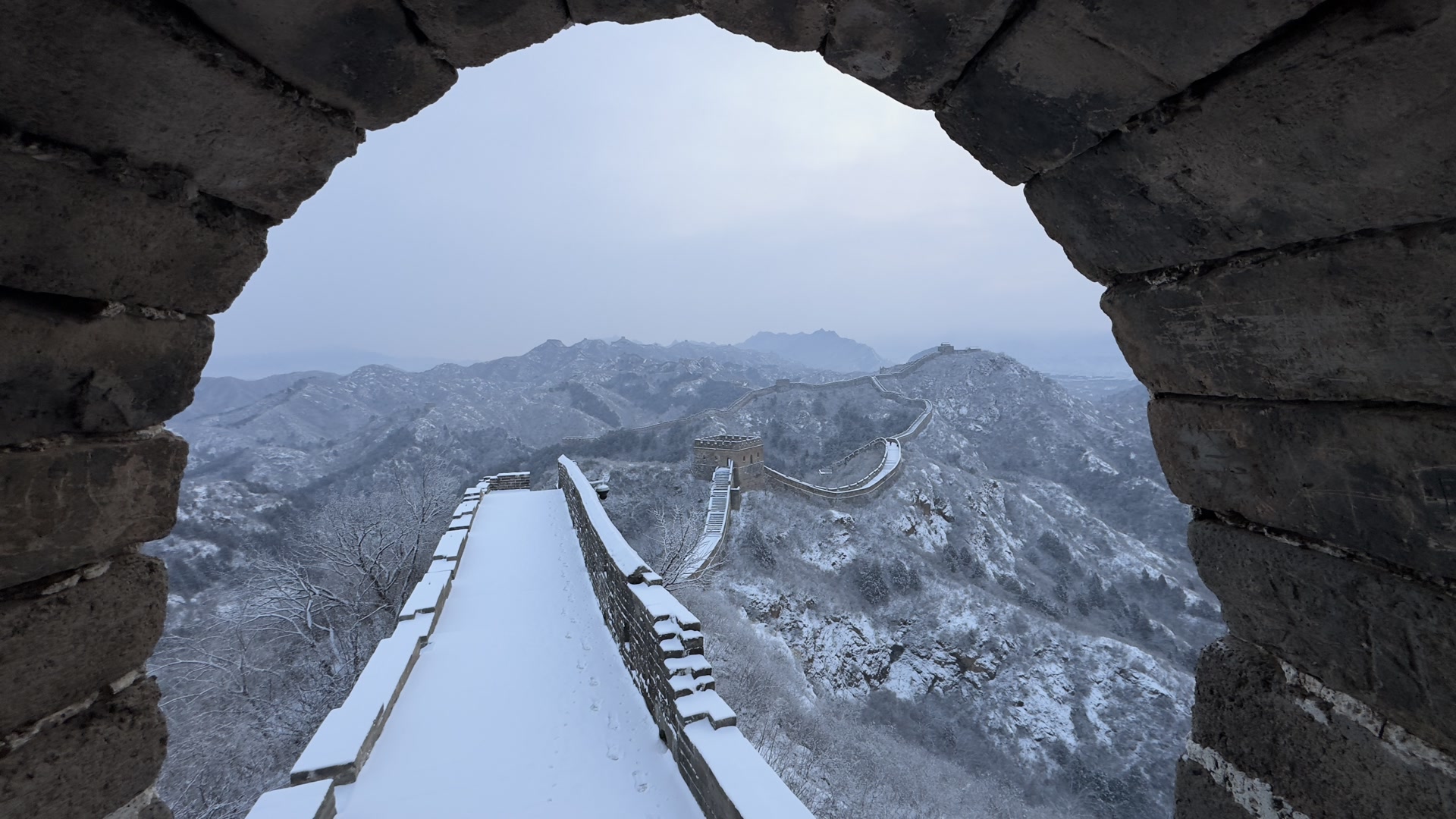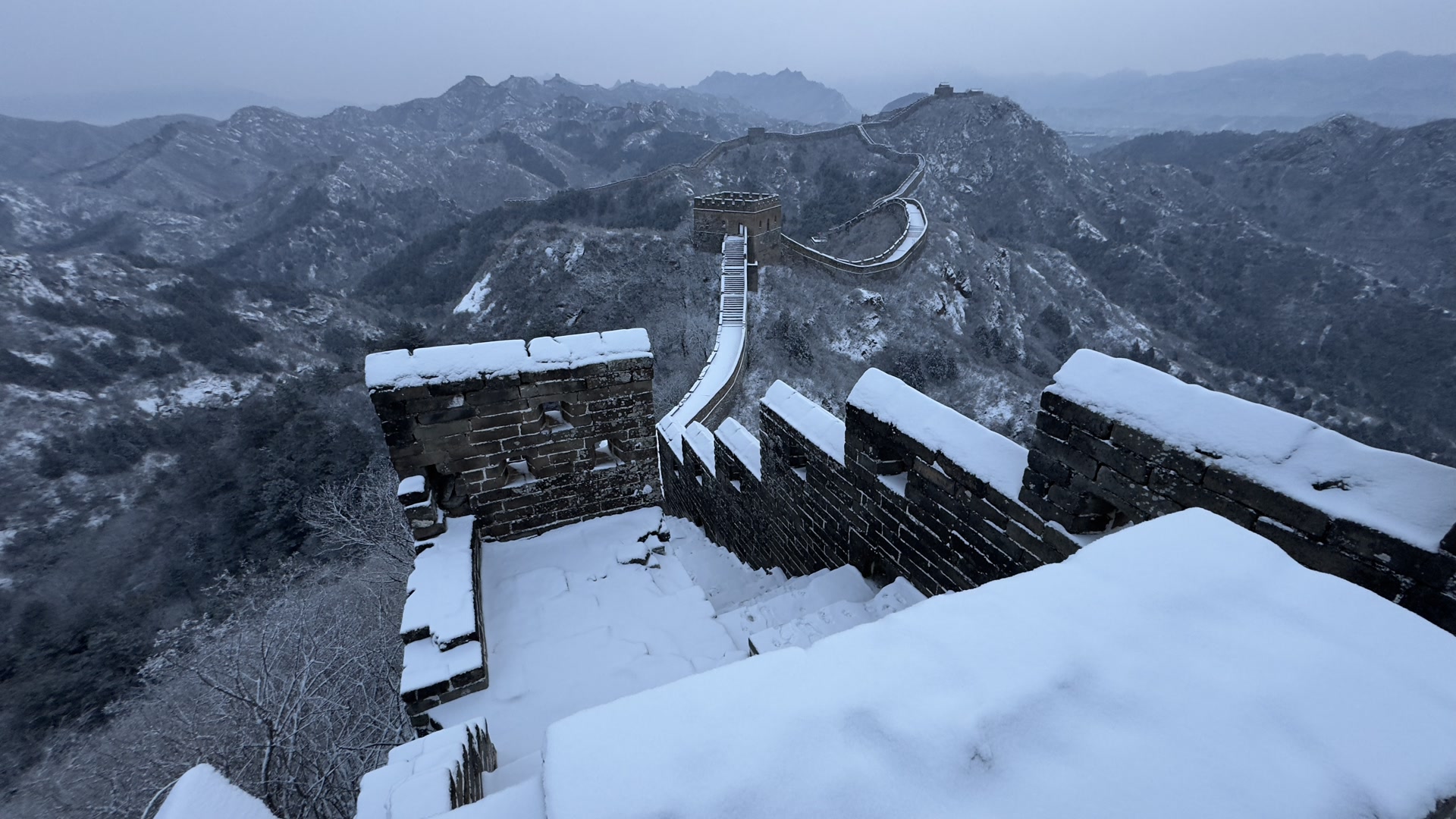 12月13日,初雪初霁,河北省承德市滦平县金山岭长城,银装素裹,一派壮美北国风光景象。