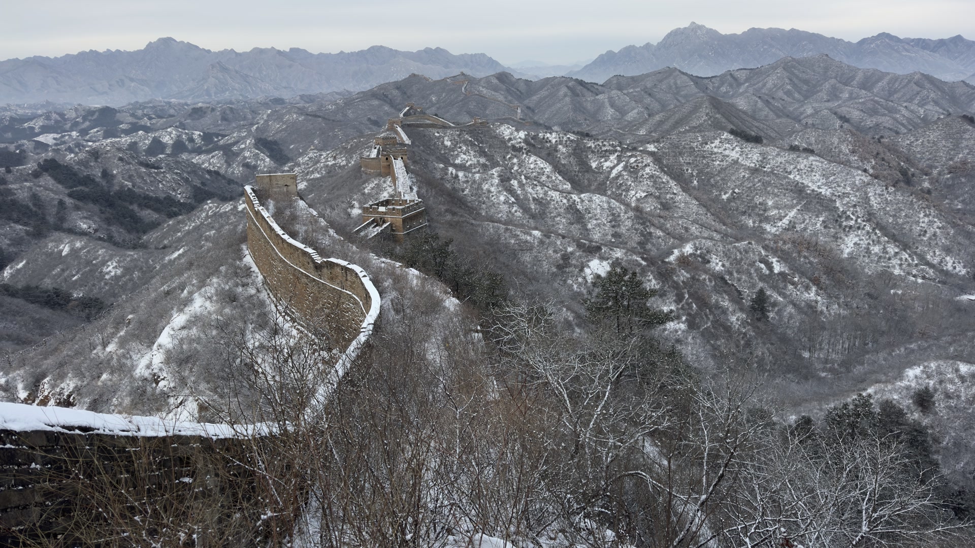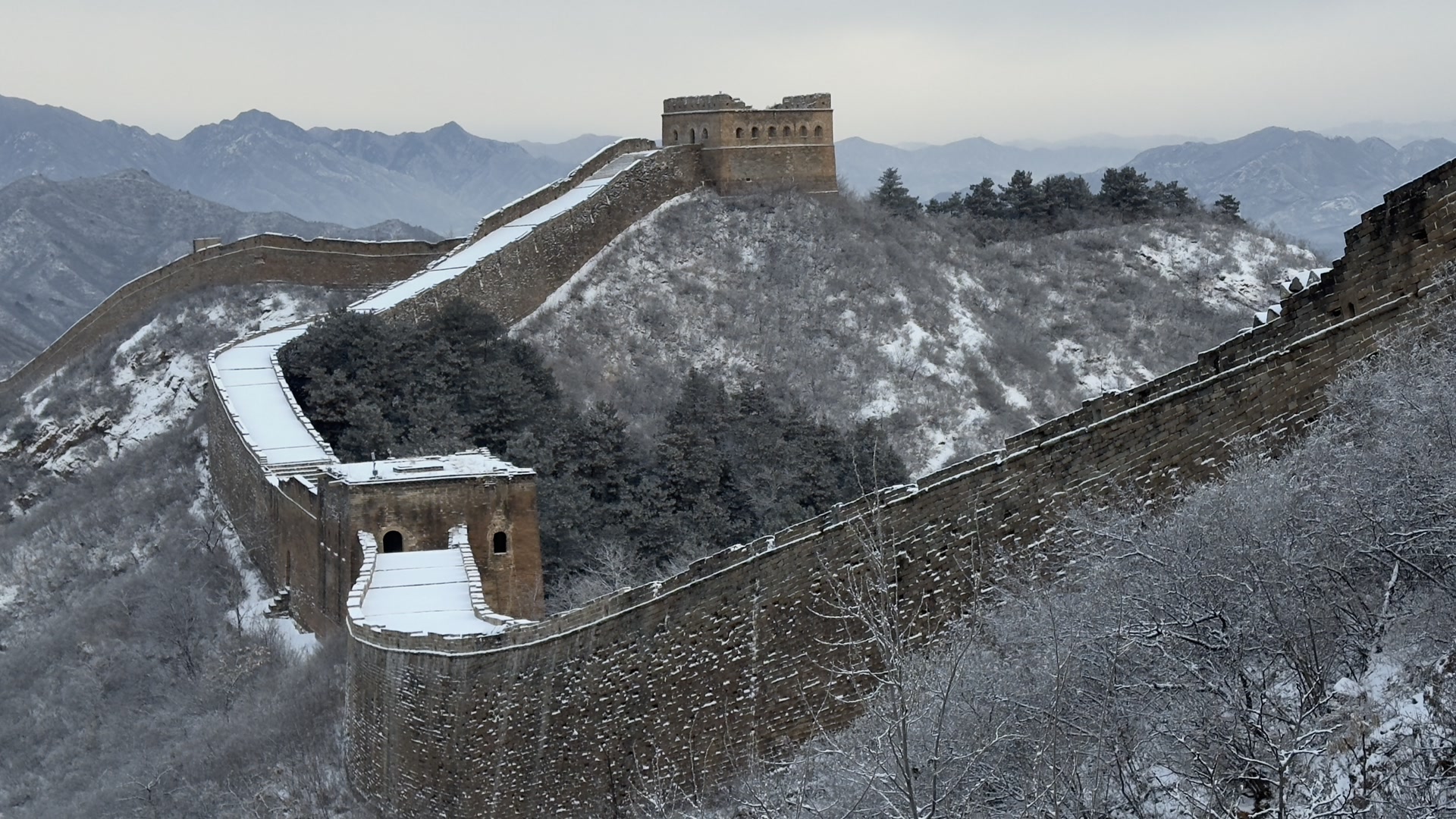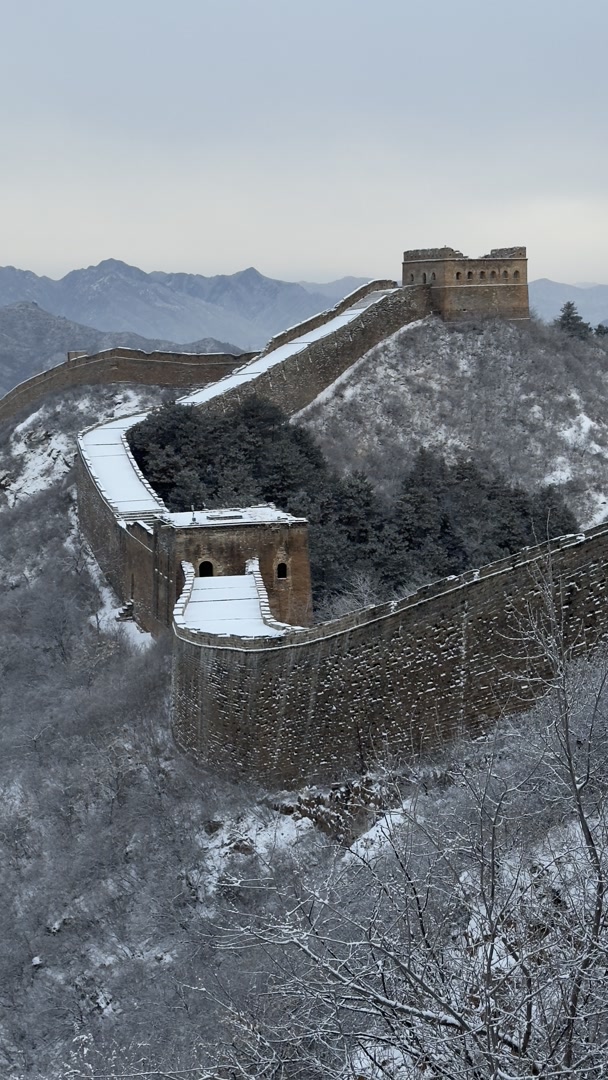 12月13日,初雪初霁,河北省承德市滦平县金山岭长城,银装素裹,一派壮美北国风光景象。