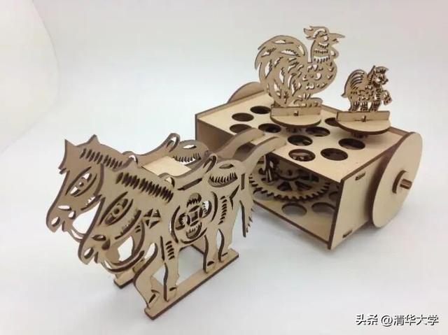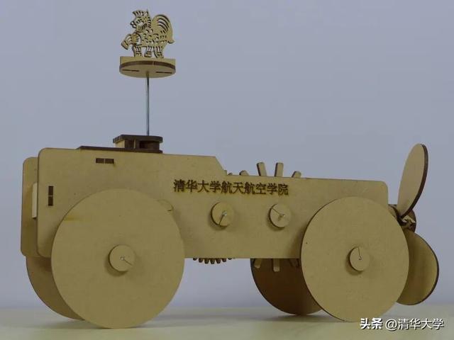 差动齿轮是一类比较复杂的齿轮系统,只讲理论学生很难真正理解。为此,高云峰特意亲手做了一个指南车。车上面原本是一个木人,他将其改装为“马拉公鸡”的装置,具有相同的指南功能。运转演示过程中,同学们看到“无论车身如何转向,车上公鸡始终指向南方”,更直观地理解了差动齿轮如何抵消车身转动的影响。