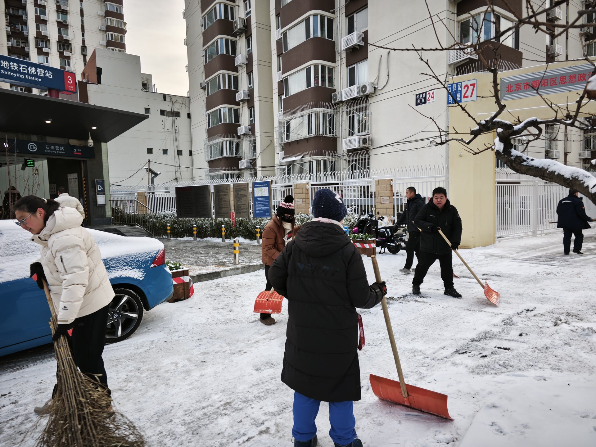 △ 石景山区老山东里社区,许多居民主动加入扫雪队伍