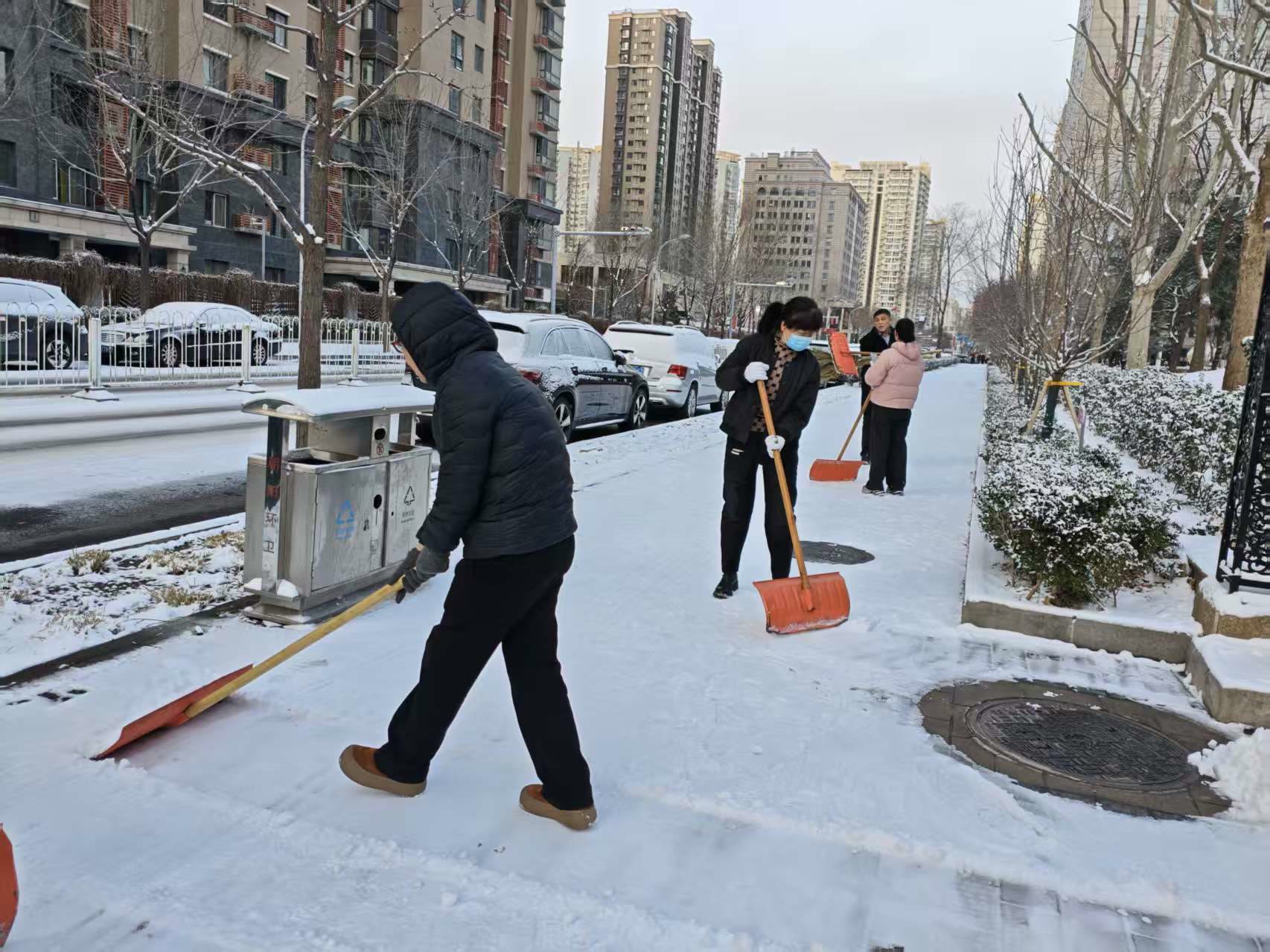 “很多楼门前的雪,居民自己就打扫干净了。我们去看4号楼那个挺陡的小坡,发现已经被扫得倍儿干净,心里特别欣慰。”辛毅说,这份社区与居民之间的默契与接力,让寒冷的清晨充满了暖意。