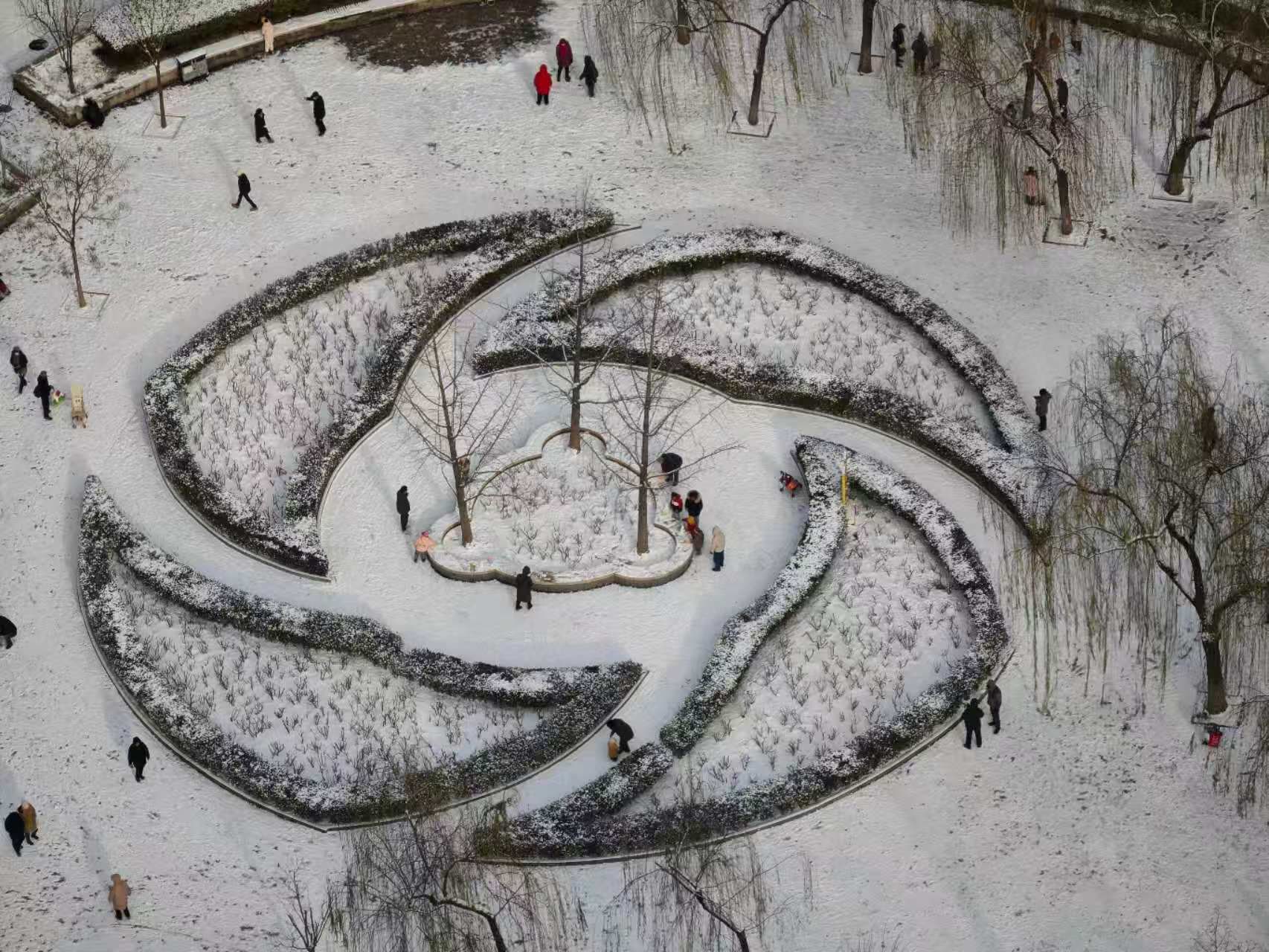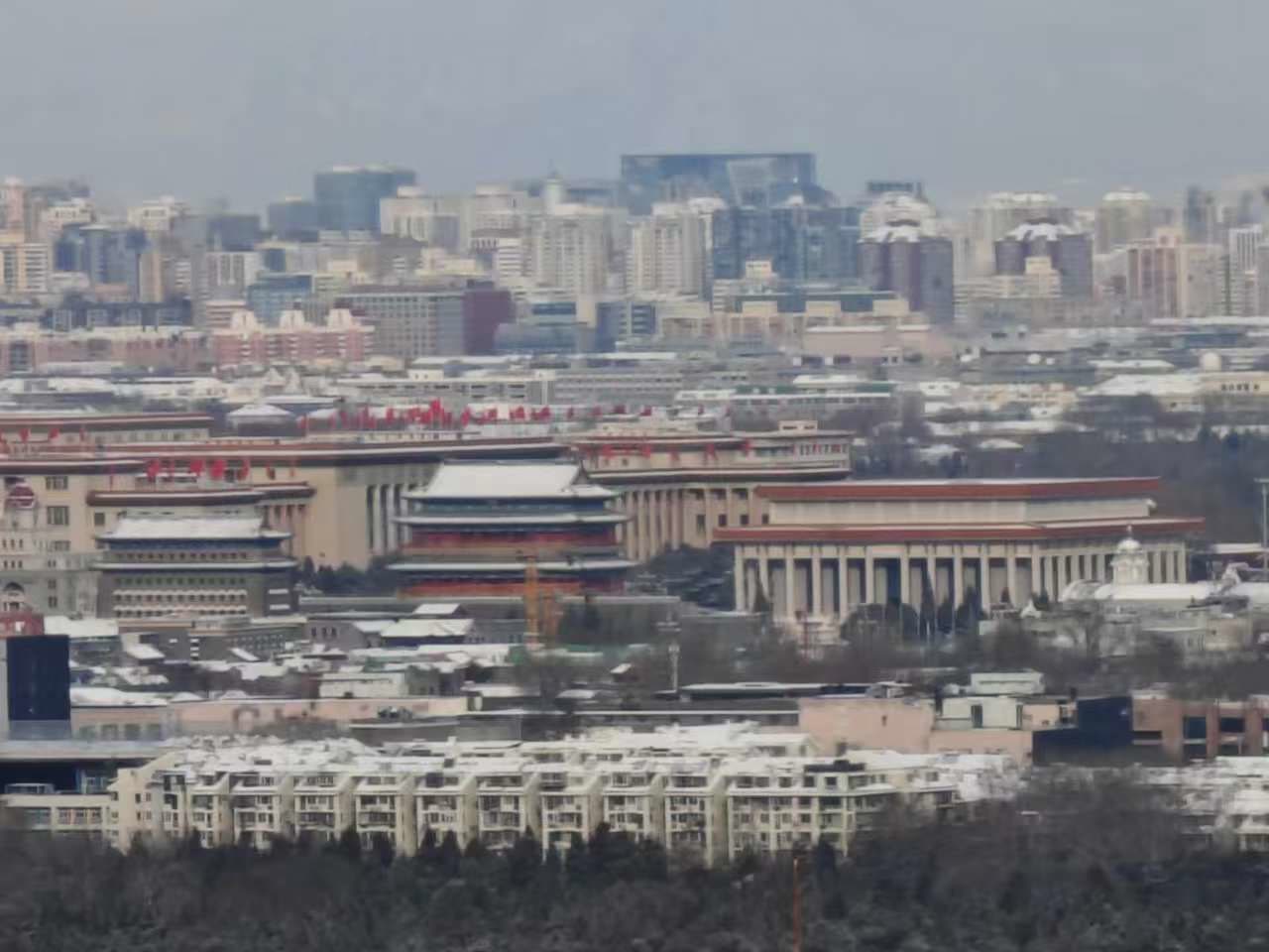 雪后天坛和天安门“同框”,市民出门赏雪忙