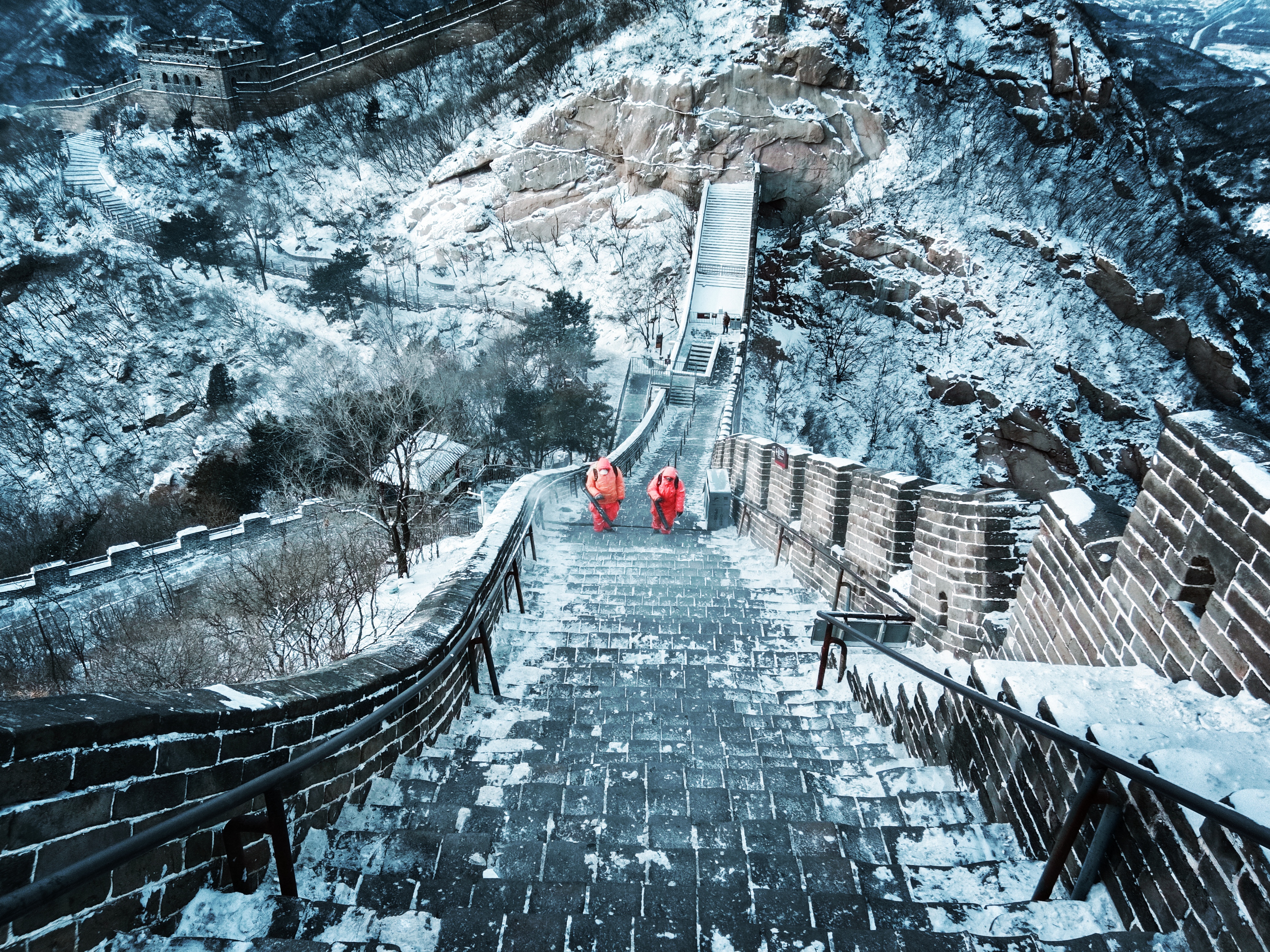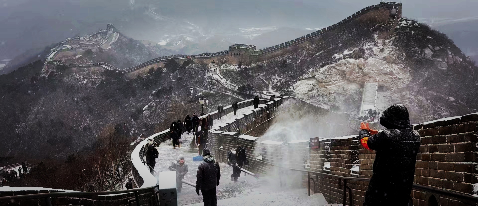 12月13日清晨,大雪暂歇,八达岭长城坚硬的城墙轮廓在雪的晕染下变得朦胧湿润,显露出一种刚柔并济的诗意。雪拥雄关,远山如黛,俨然一幅水墨画。