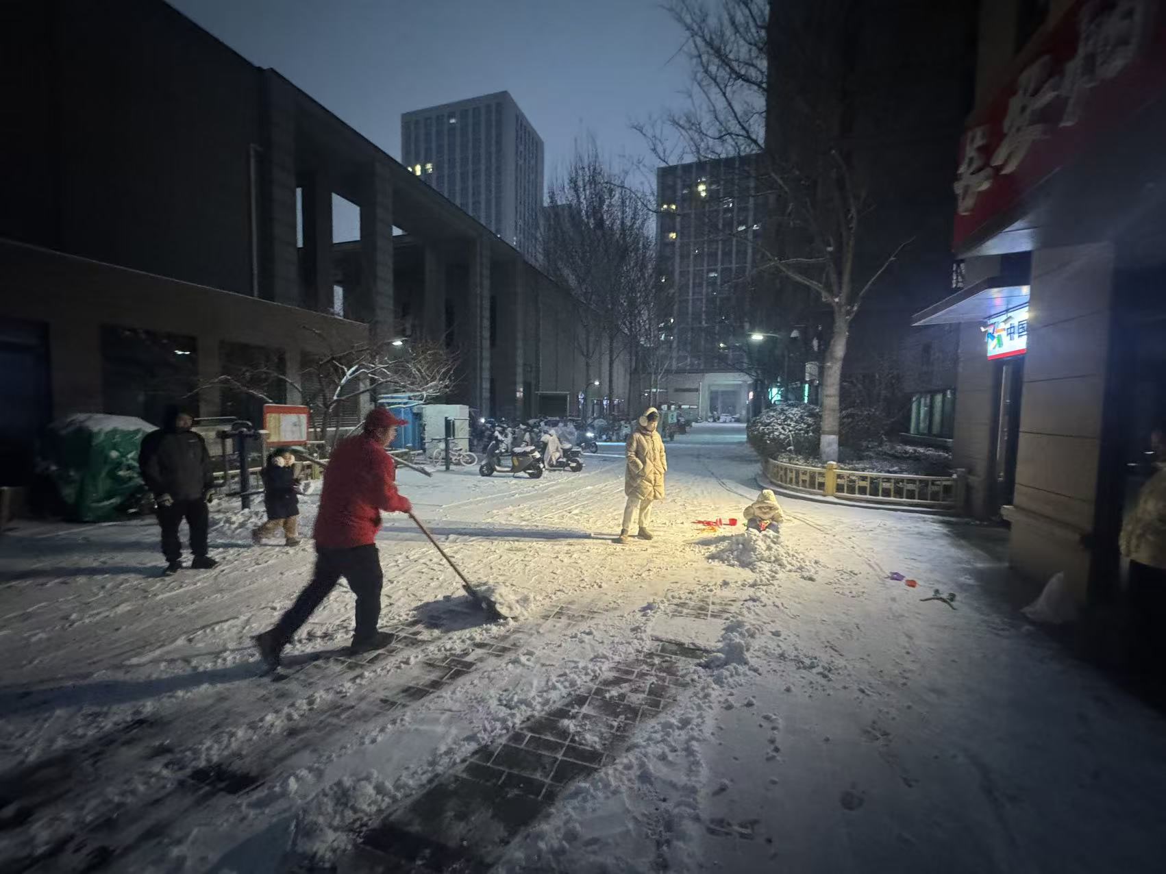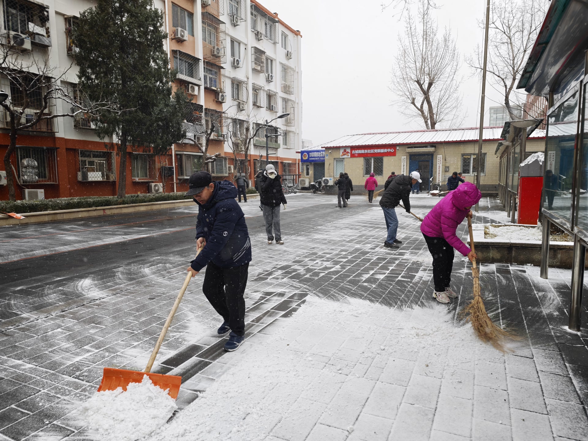 12月12日,北京迎来今冬首场降雪,各街道社区组织多方力量,共同开展扫雪铲冰行动,保障辖区居民和企业员工下班路的出行安全。