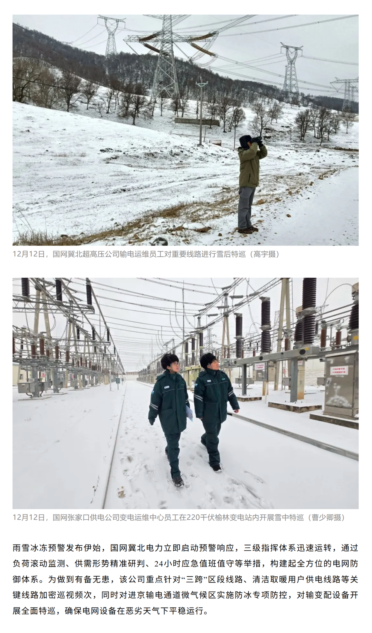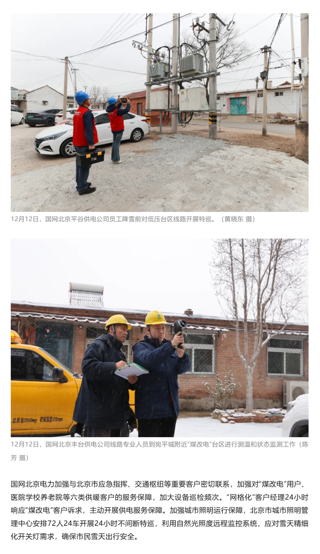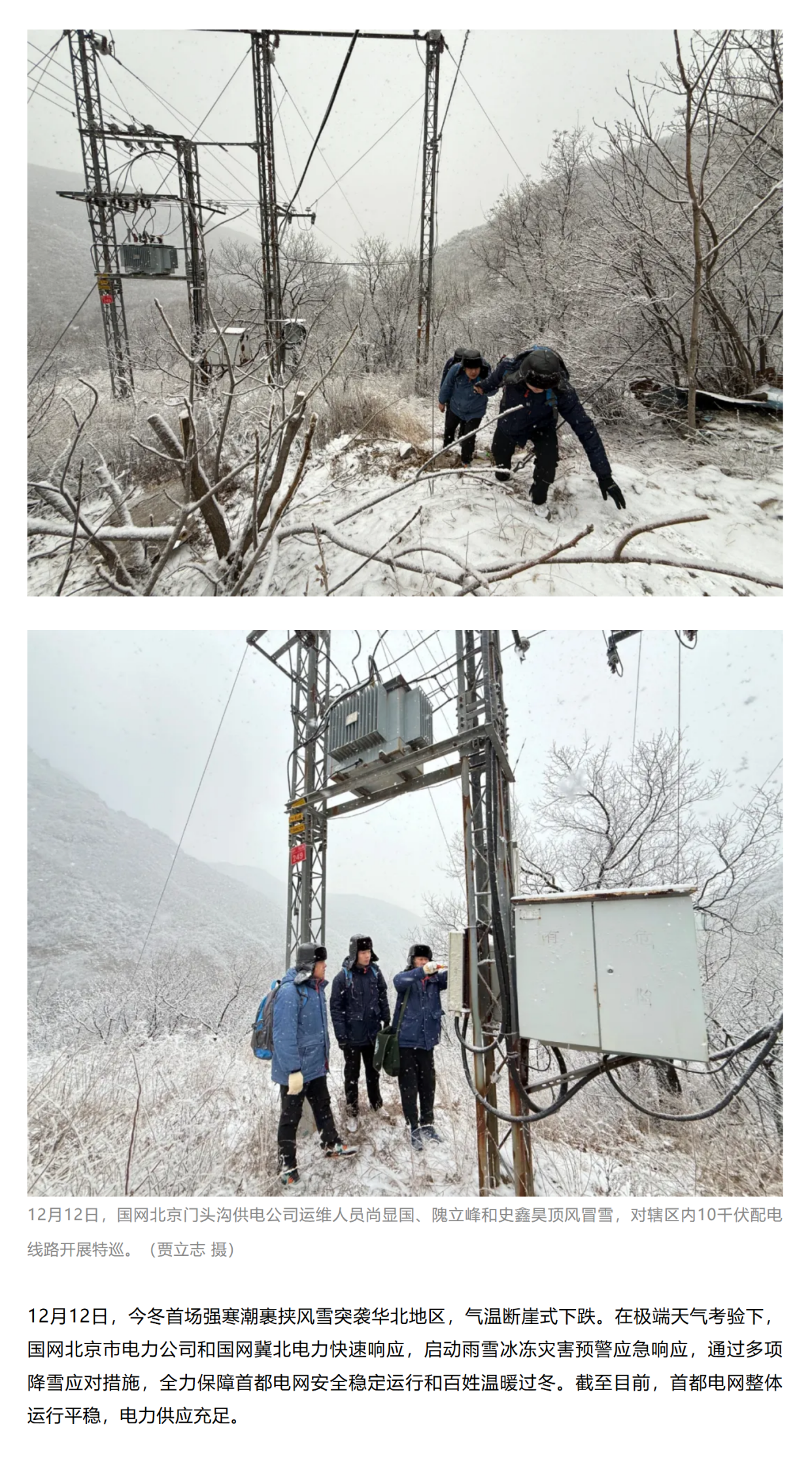 迎今冬首场降雪 国网北京电力、冀北电力全力应对保供电