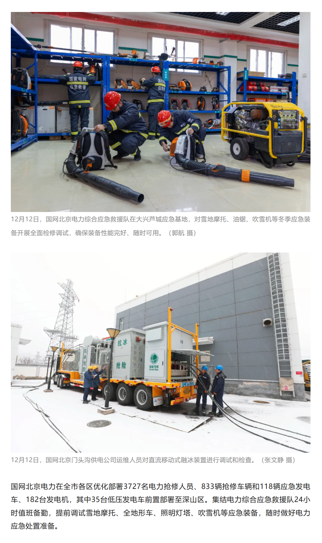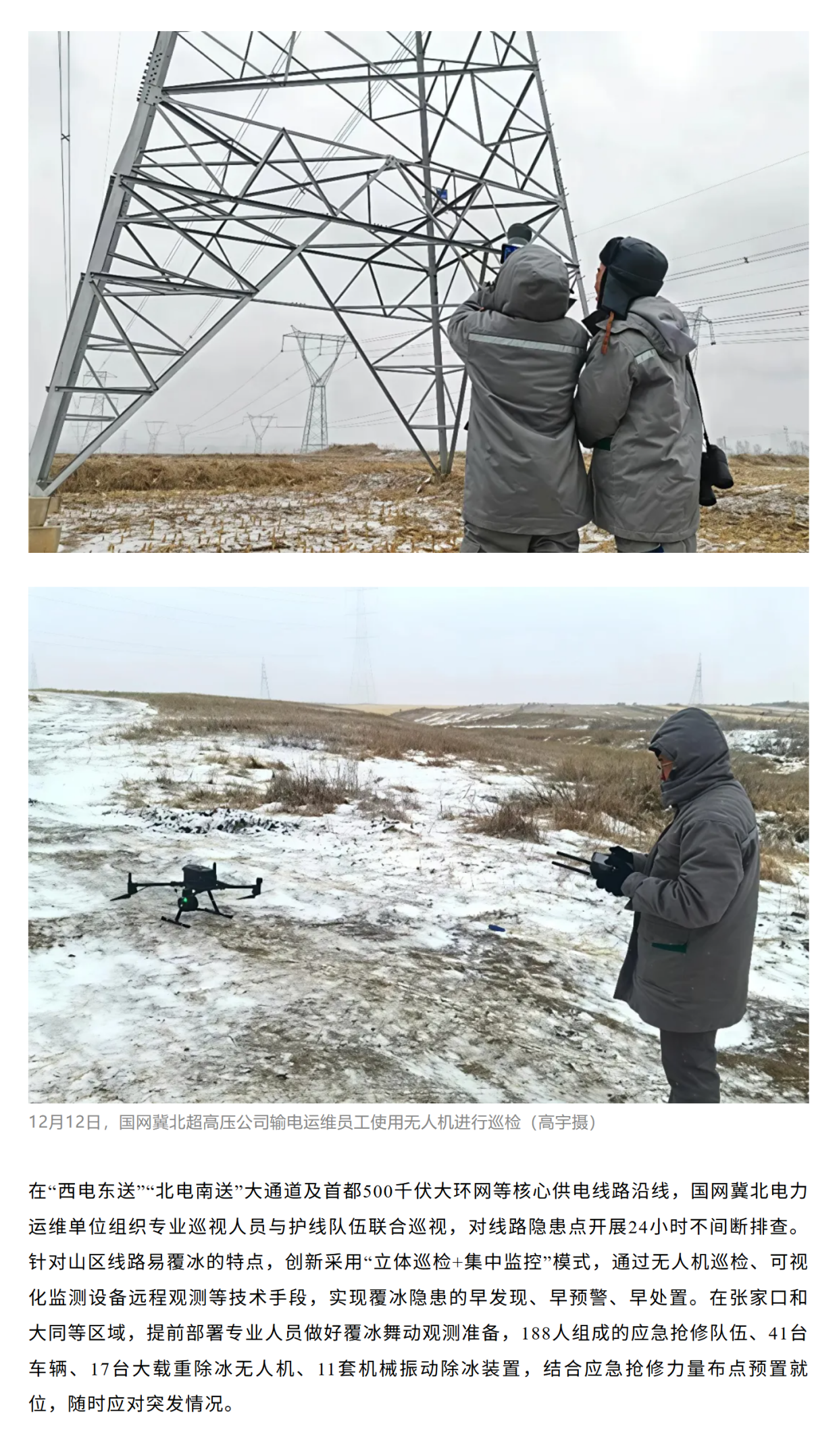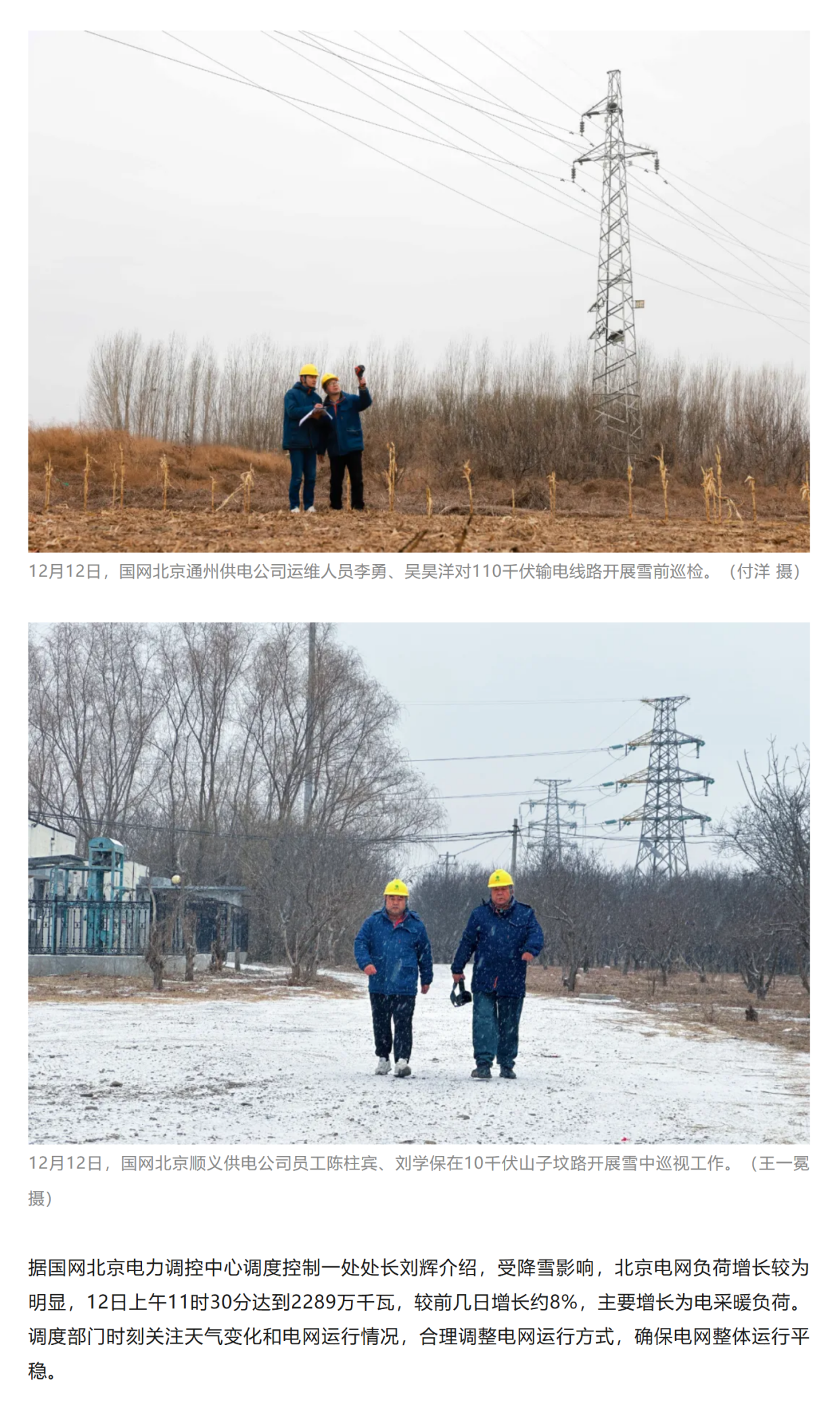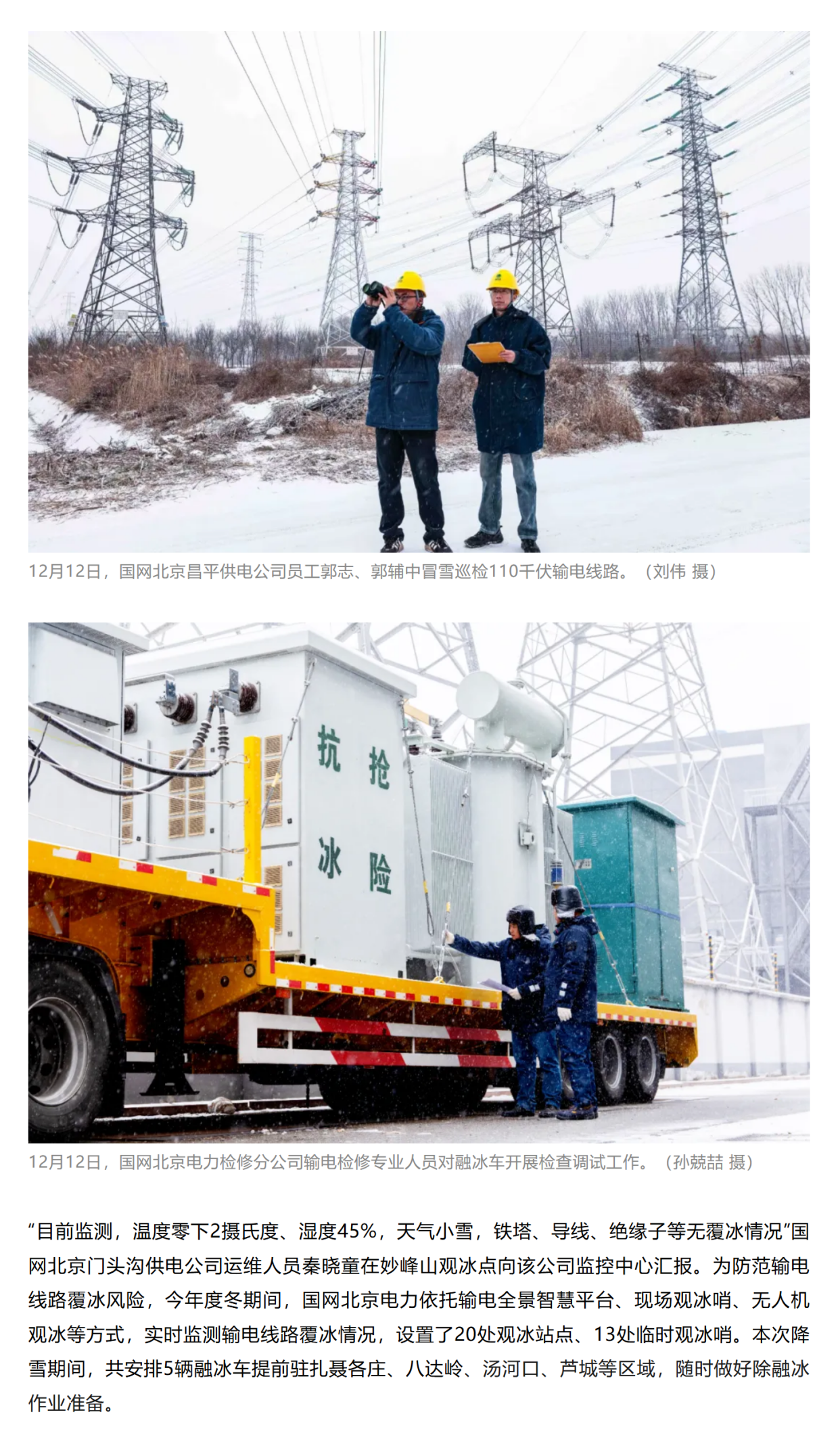 迎今冬首场降雪 国网北京电力、冀北电力全力应对保供电