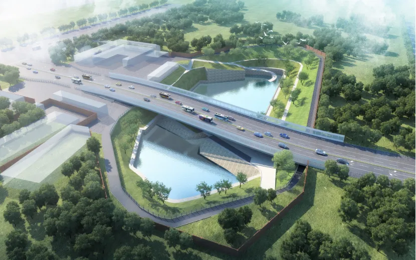 西黄村北街项目是石景山区重要的民生交通工程,南起希望公园南侧路,北至永引渠南路,规划为城市次干路。项目涵盖道路、照明、交通、排水等多项工程,其中核心难点在于需以桥梁形式上跨水文观测站调蓄池。该桥梁段长146米、宽30米,上部结构采用50片预制箱梁,施工精度与安全管控要求极高。