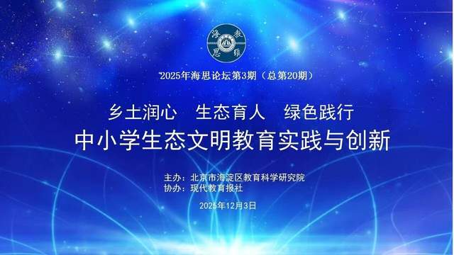 近日,以“乡土润心 生态育人 绿色践行”为主题的2025海思论坛如期举行。今年,恰逢“绿水青山就是金山银山”理念提出20周年,北京市海淀区依托“三山五园”“京西稻”等地域资源,构建“四位一体”体系,各校深耕特色育人实践。论坛聚焦成果分享,为培育有“根”有“魂”的时代新人凝聚海淀智慧。