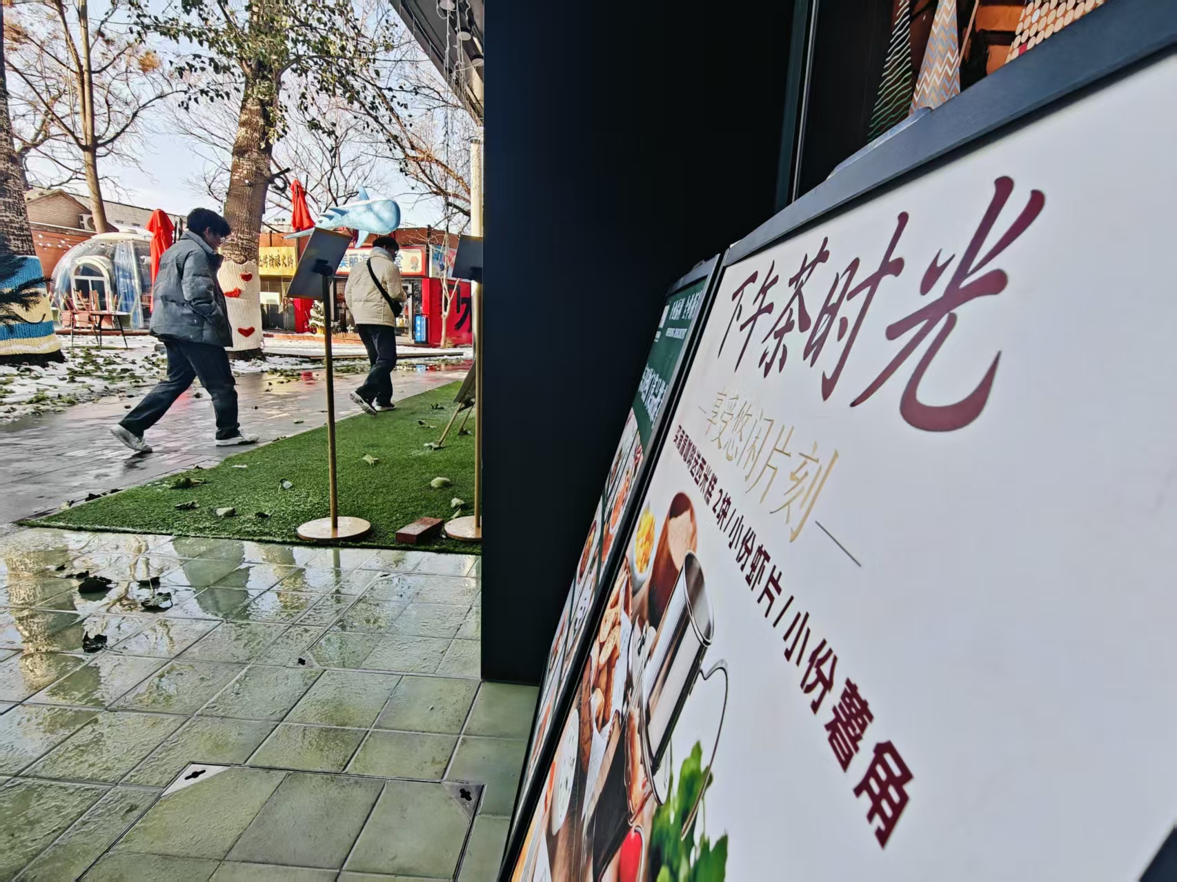 12月13日,北京雪后初晴。红桥市场之北,天坛东门之侧,北京街被白雪点缀后,多了几分韵味。这里曾是1920年轰鸣的电车修造厂,齿轮与蒸汽的余韵,至今仍藏在砖墙的纹路里。当岁月翻过新页,这里的咖啡厅、花店、饰品店等,成了游人的打卡地。雪后,人们漫步北京街,尽享闲适时光。