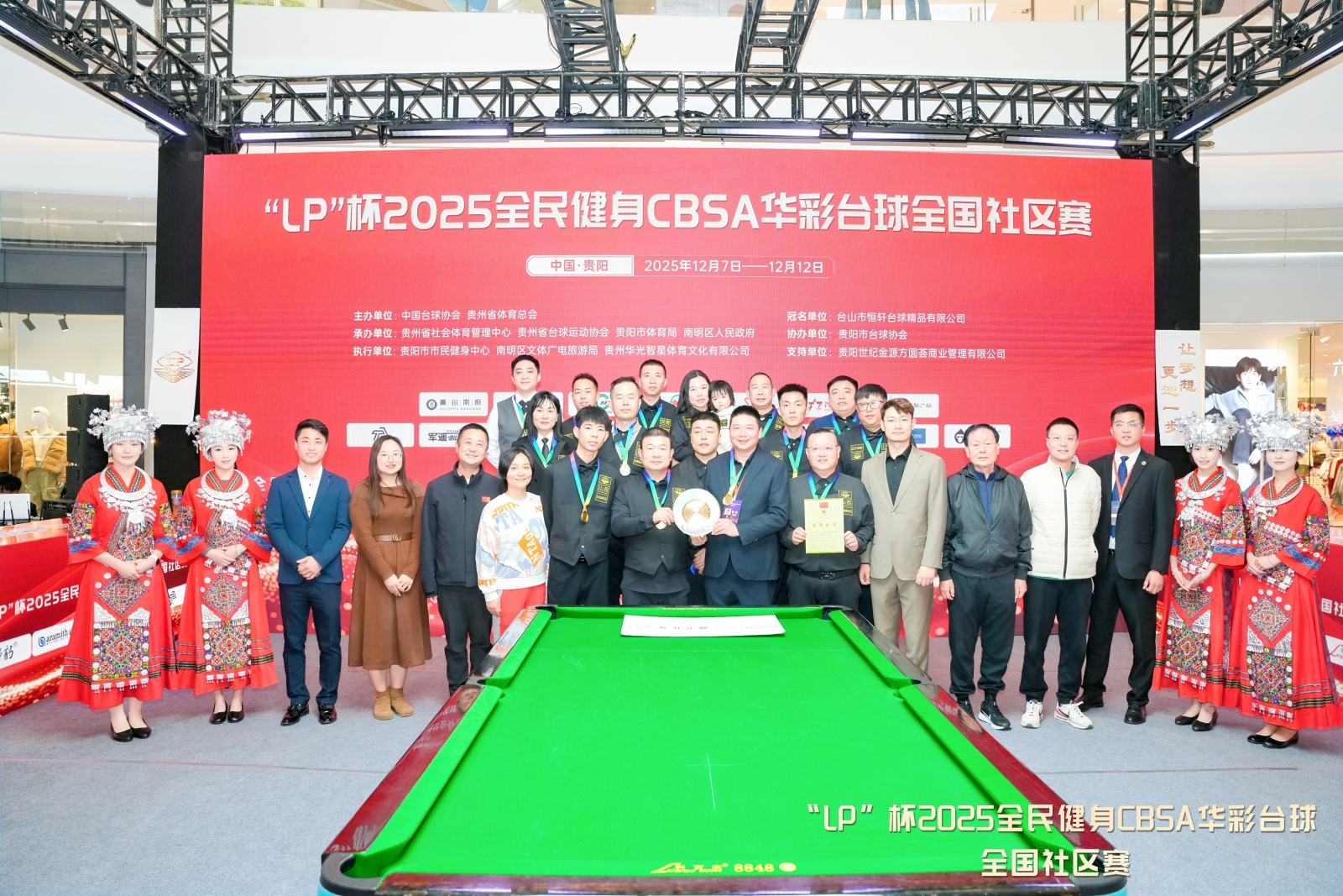 12月12日,“LP杯”2025全民健身CBSA华彩台球全国社区赛在贵州省贵阳市落幕。山西白龙庙社区代表队以总比分3比1战胜山东东黄埠社区代表队,夺得冠军。