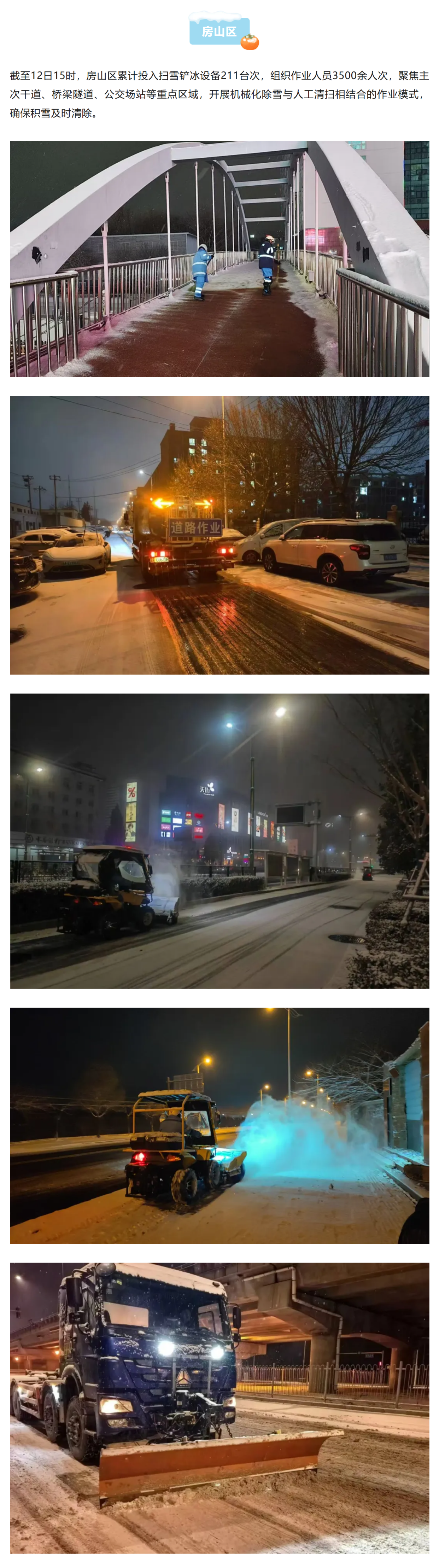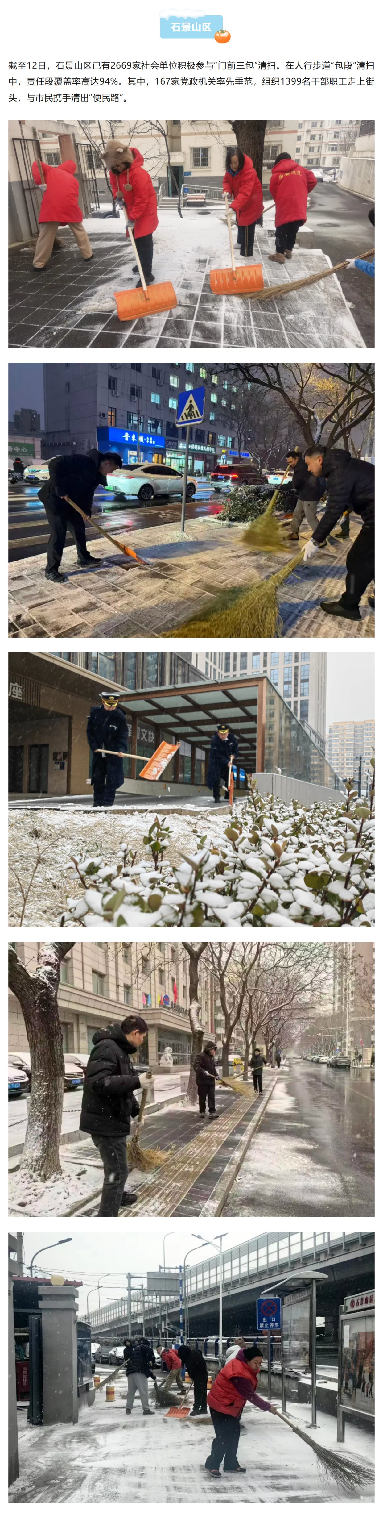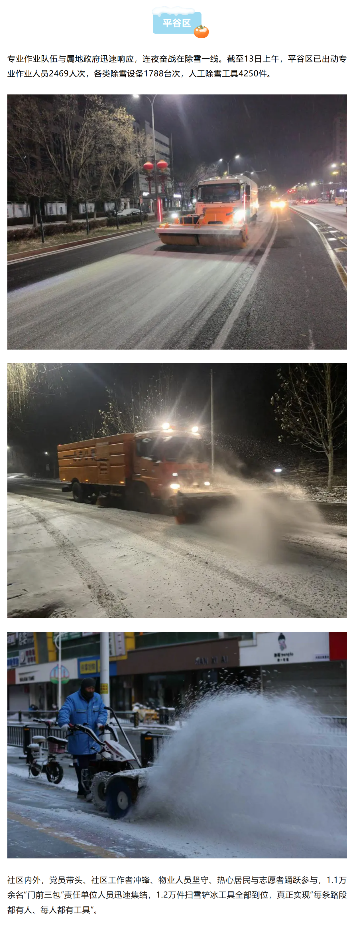 雪落无声,担当有痕。本次降雪以来,从环卫冒严寒连夜清扫,到社会力量热情参与,扫雪铲冰不仅扫出了群众出行安全路,更扫出了以雪为令的担当与守护,以及基层治理的暖心温度。