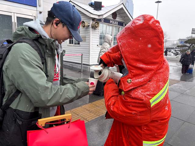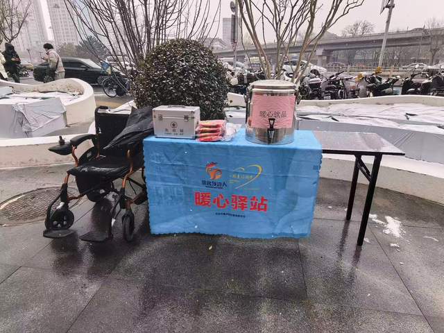 在全力除雪的同时,北站办积极开展暖心延伸服务。在出租车调度站、“的士之家”、落客区设置暖心驿站,累计为旅客和司机提供热姜糖水、暖宝宝、暖身贴、应急口罩等各类御寒便民物资数百份。工作人员主动为旅客打伞遮雪,协助搬运大件行李、引导路线,并对行动不便者提供搀扶、轮椅推送等贴心帮助,让严寒天气下的出行充满温度。
