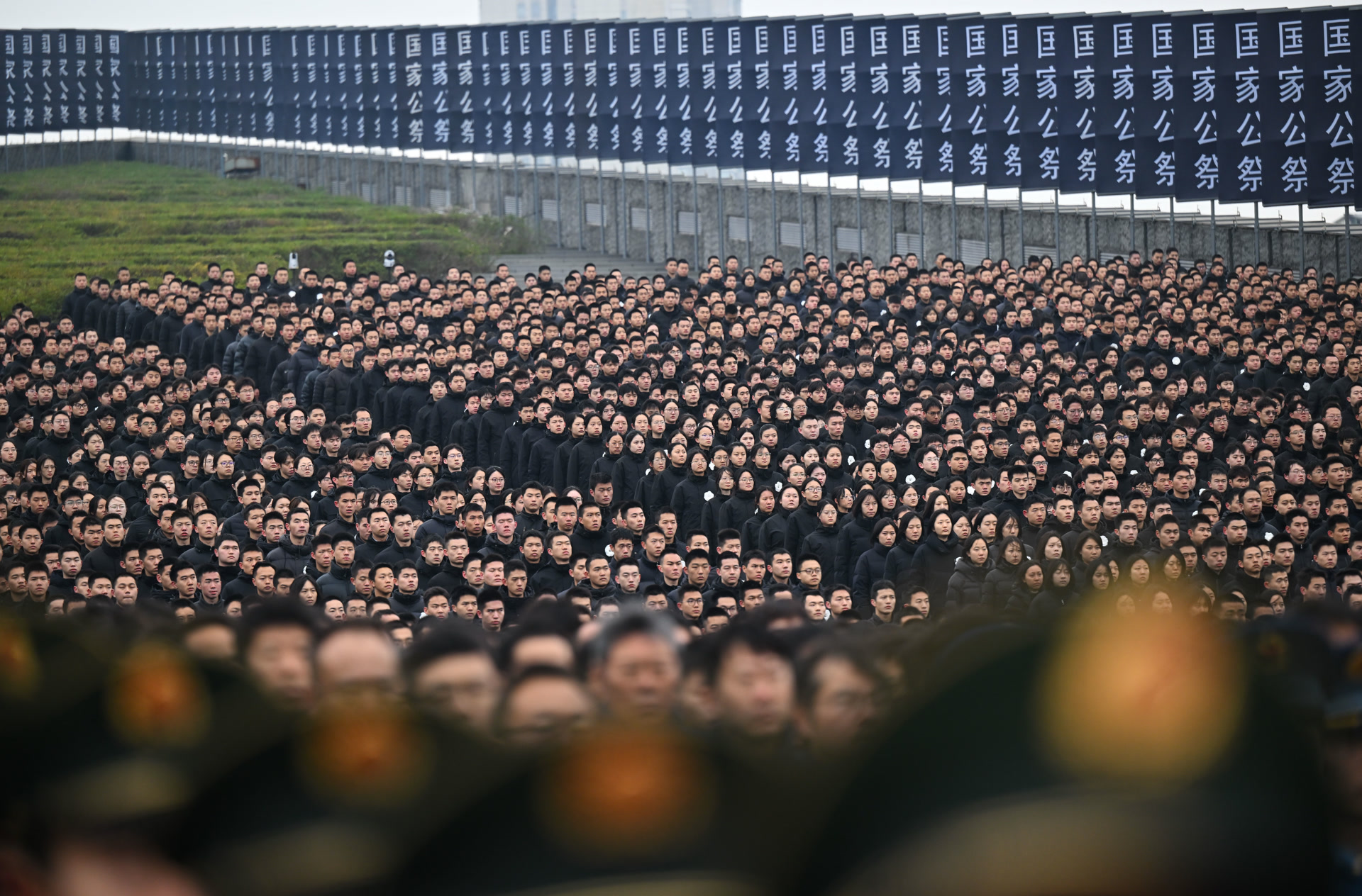 12月13日,寒冬凛冽,南京迎来第十二个国家公祭日。上午10时,国家公祭仪式在侵华日军南京大屠杀遇难同胞纪念馆集会广场庄严举行,国旗半垂,哀乐低回。约8000名胸佩白花的各界代表垂首默立,防空警报撕裂长空,将人们的思绪带回88年前的黑暗岁月——30万同胞惨遭杀戮,古都南京满目疮痍。
