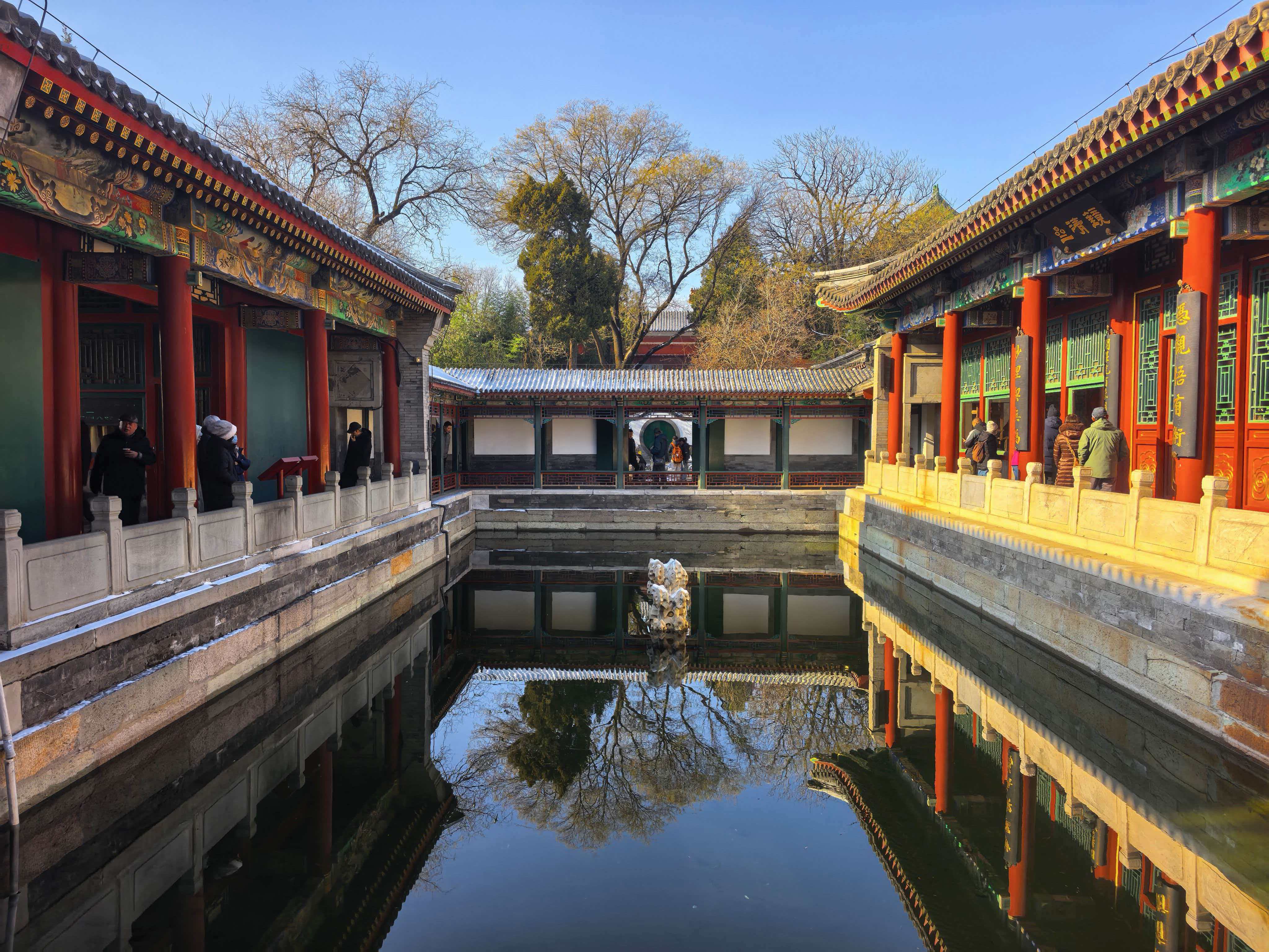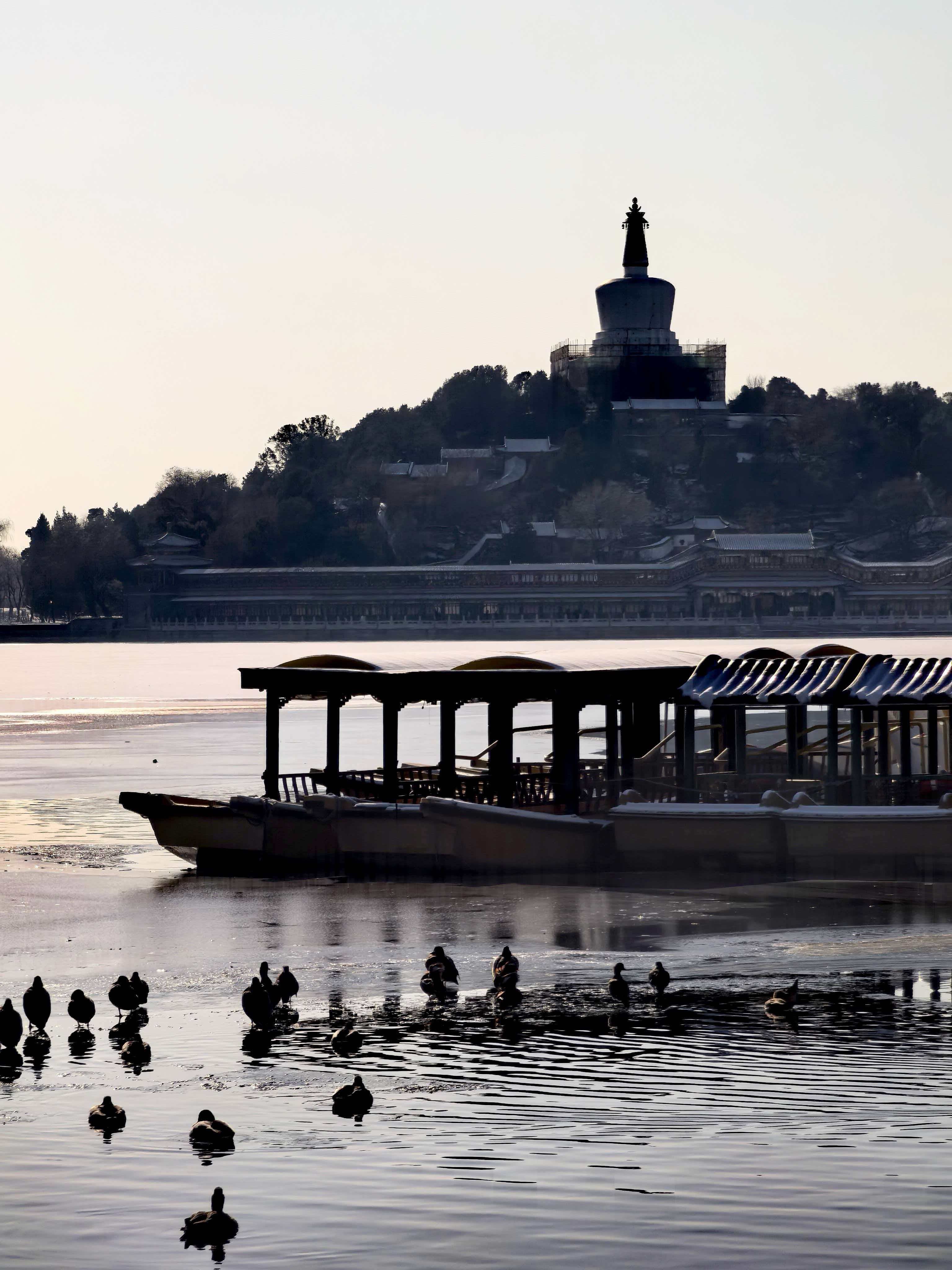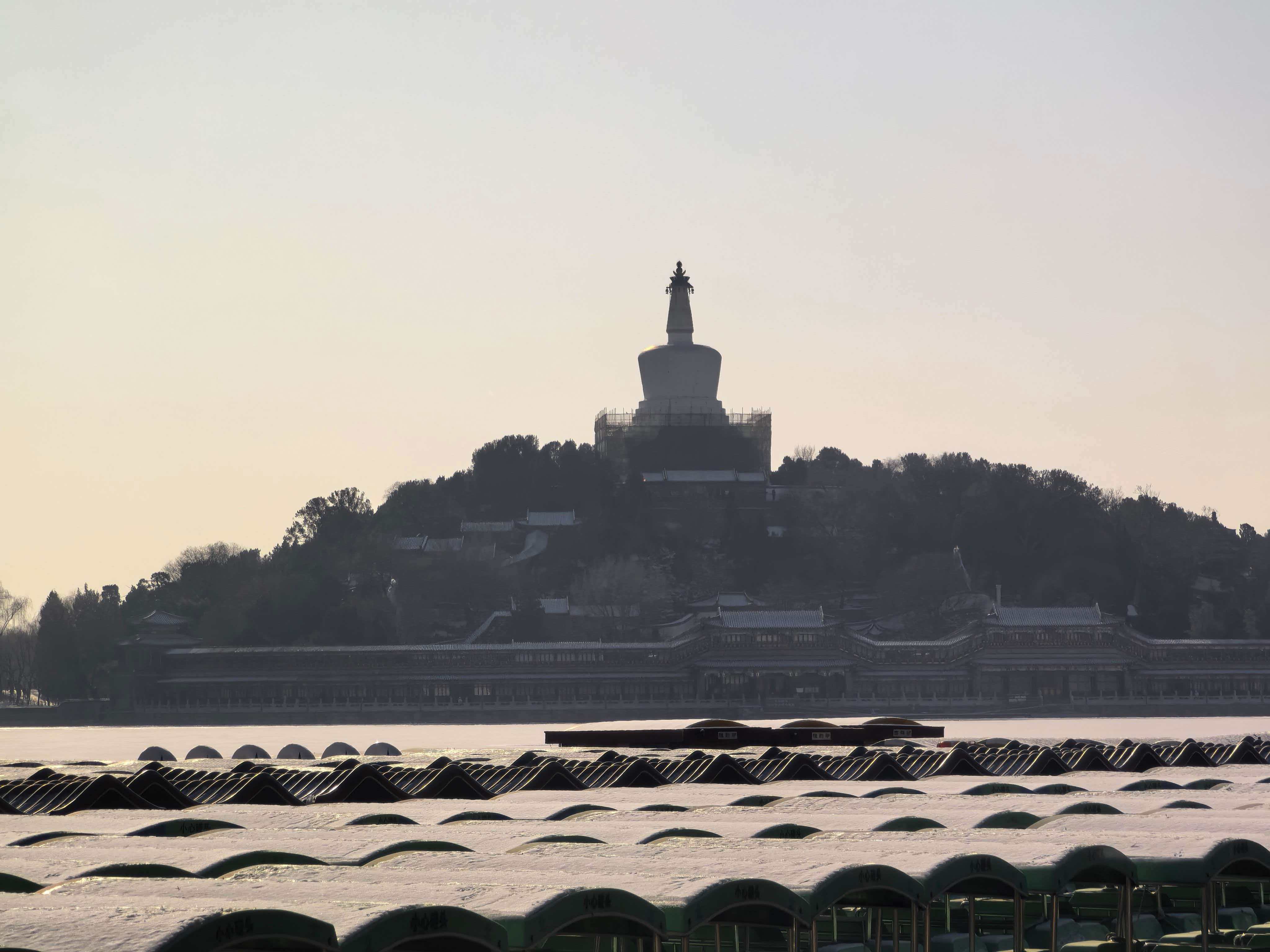 雪景与白塔交融,北海公园冬景旖旎