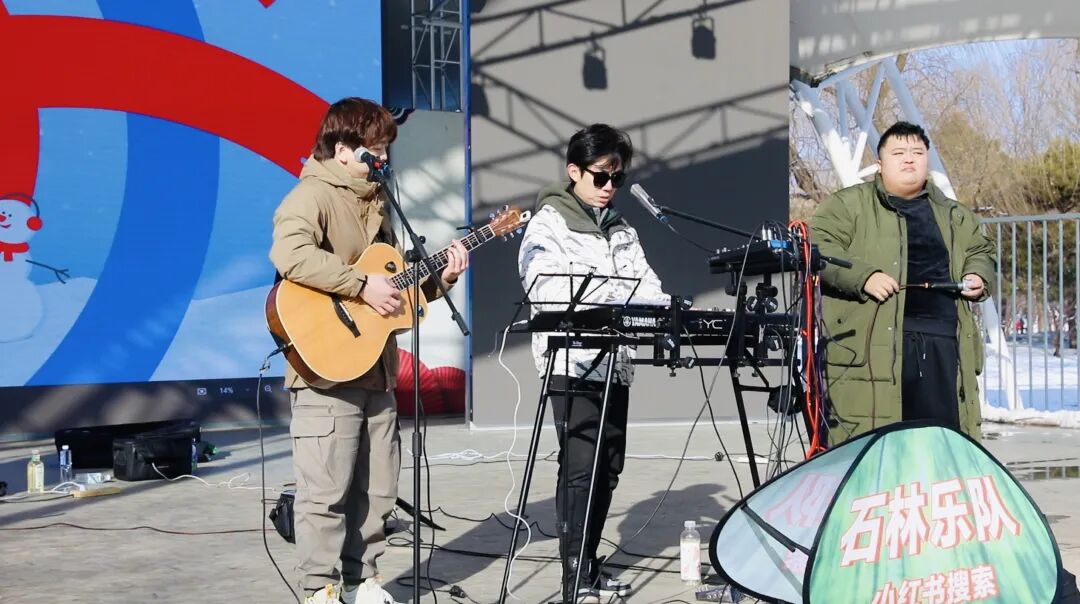 演奏间隙,乐手们还与观众亲切互动,主唱歌手笑着调侃“雪花是今天最好的伴奏”,吉他手即兴弹奏起轻快的旋律,邀请观众跟着节奏拍手应和。在这个音乐编织的午后,大家浑然不觉寒冷,或静静聆听,或举着手机记录精彩瞬间,或跟着旋律轻轻哼唱,现场氛围在音乐与雪景的交融中愈发浓厚。