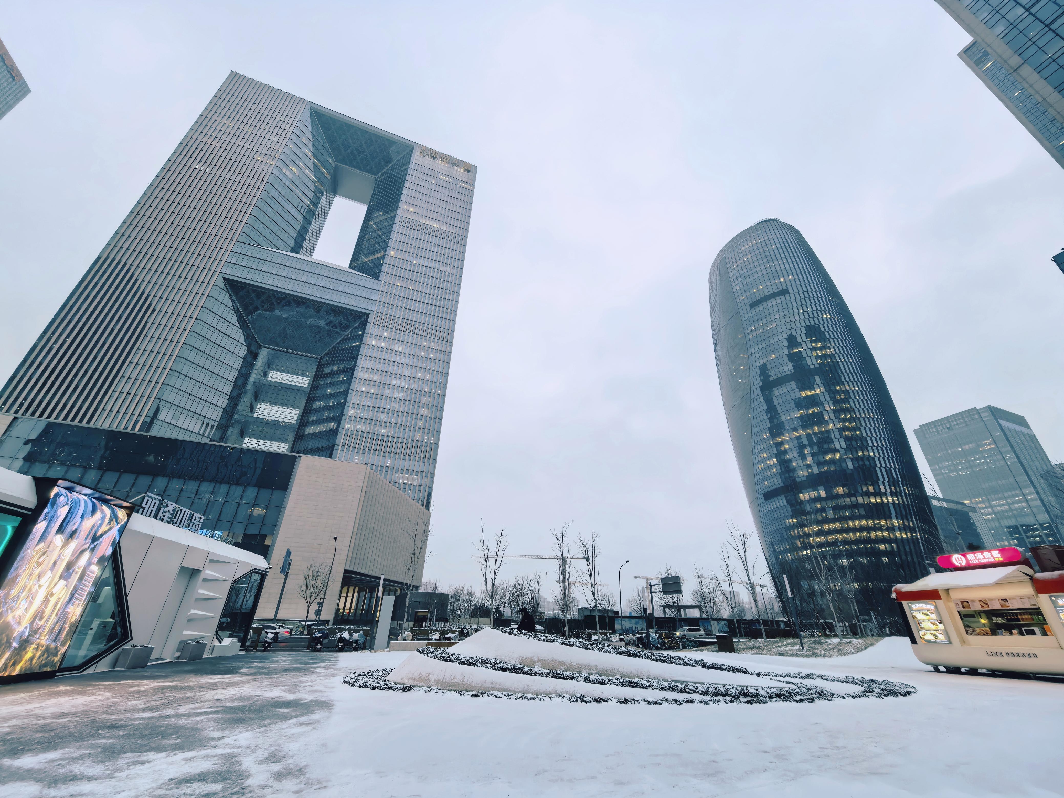 清雪不等于除尽所有雪。在确保道路、台阶畅通安全的基础上,丽泽金融商务区特意在金中都城遗址公园、丽泽滨水文化公园、城市运动休闲公园等附近草坪、景观小品周围保留自然积雪,供市民赏景拍照。
