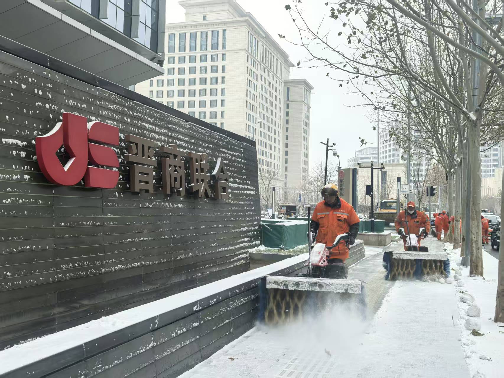 为应对此次降雪,丽泽金融商务区管委会组织召开扫雪铲冰应急保障动员会,组建150人的24小时应急保障队伍,涵盖环卫、绿化、秩序维护等多工种,除常规的大型多功能除雪车、融雪车、清扫车外,还采用手推式扫雪机等小型机械化设备,确保人行步道、背街小巷等区域清雪“无死角”。各楼宇落实门前三包及时清理门前积雪残冰,合理堆放雪堆,避免占用行人通道、盲道及停车区域,为市民营造安全畅通的出行环境。