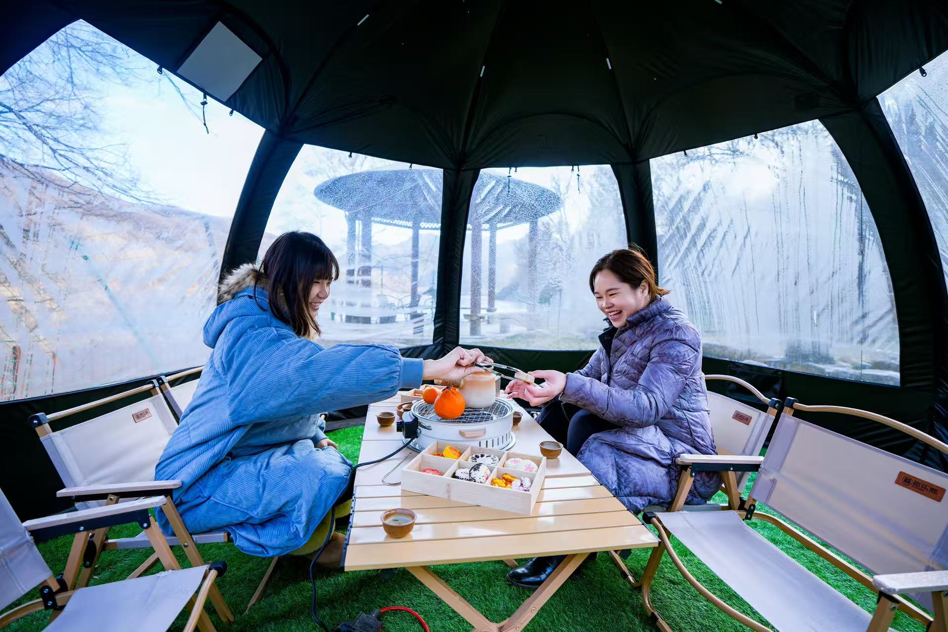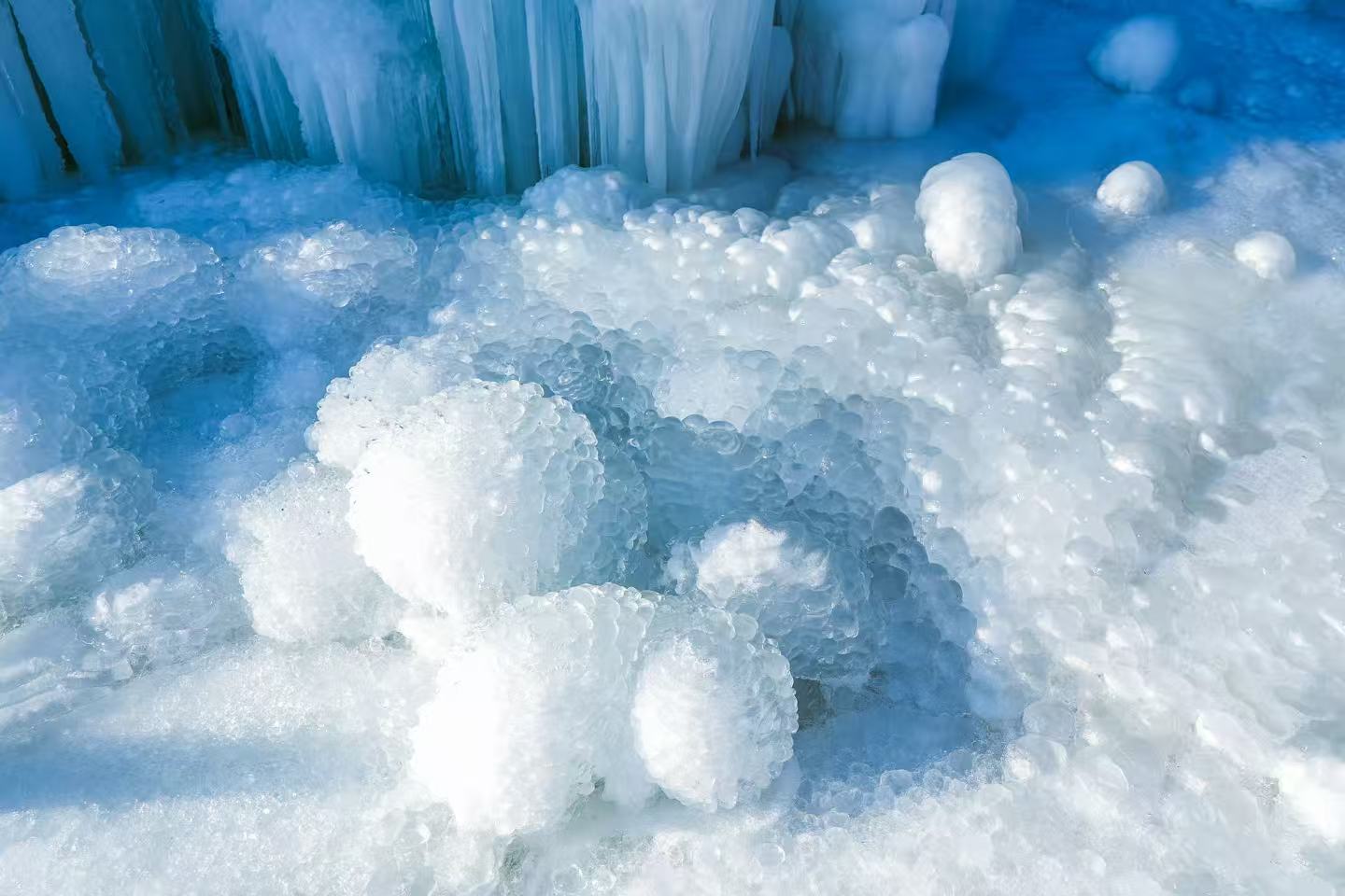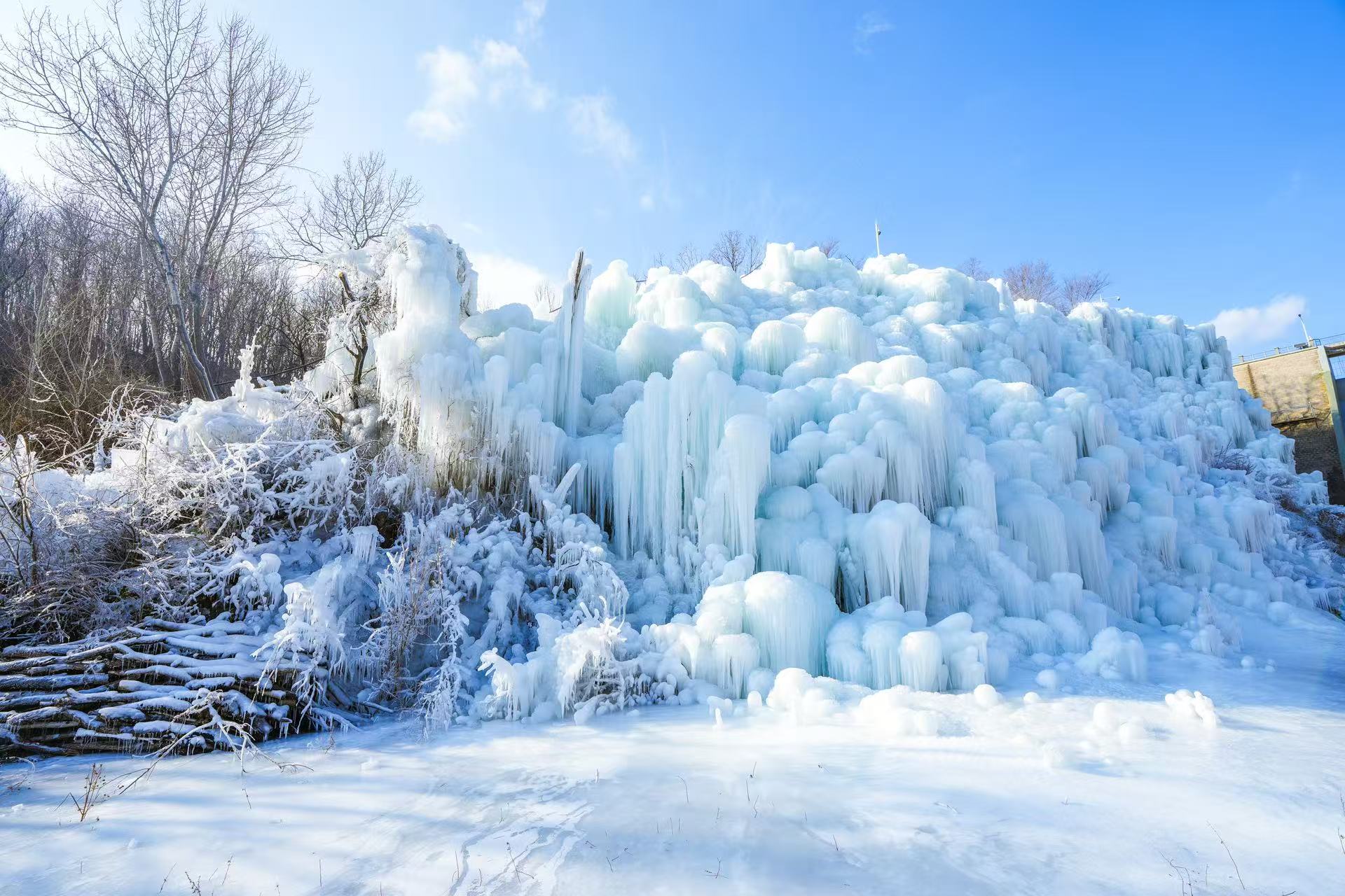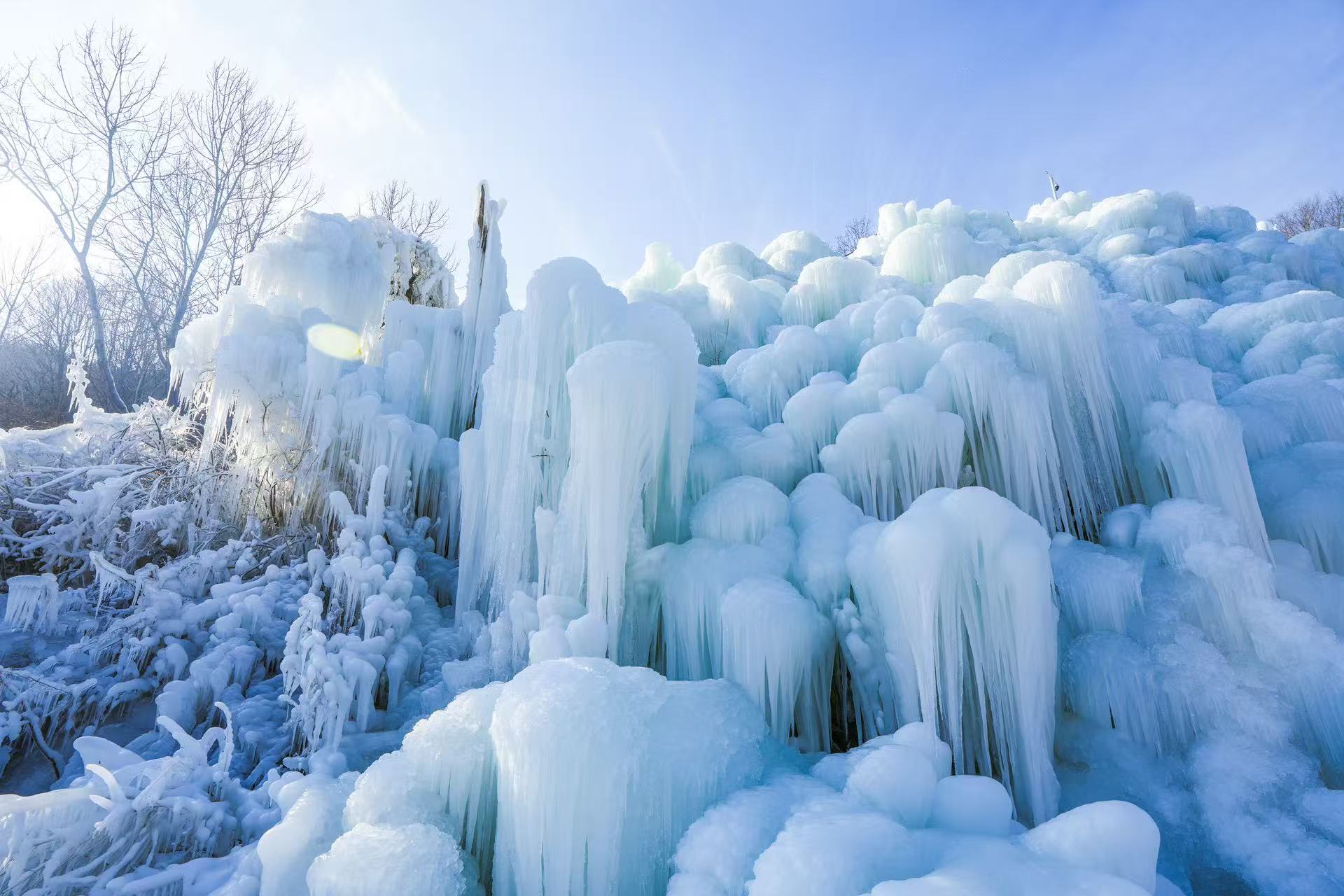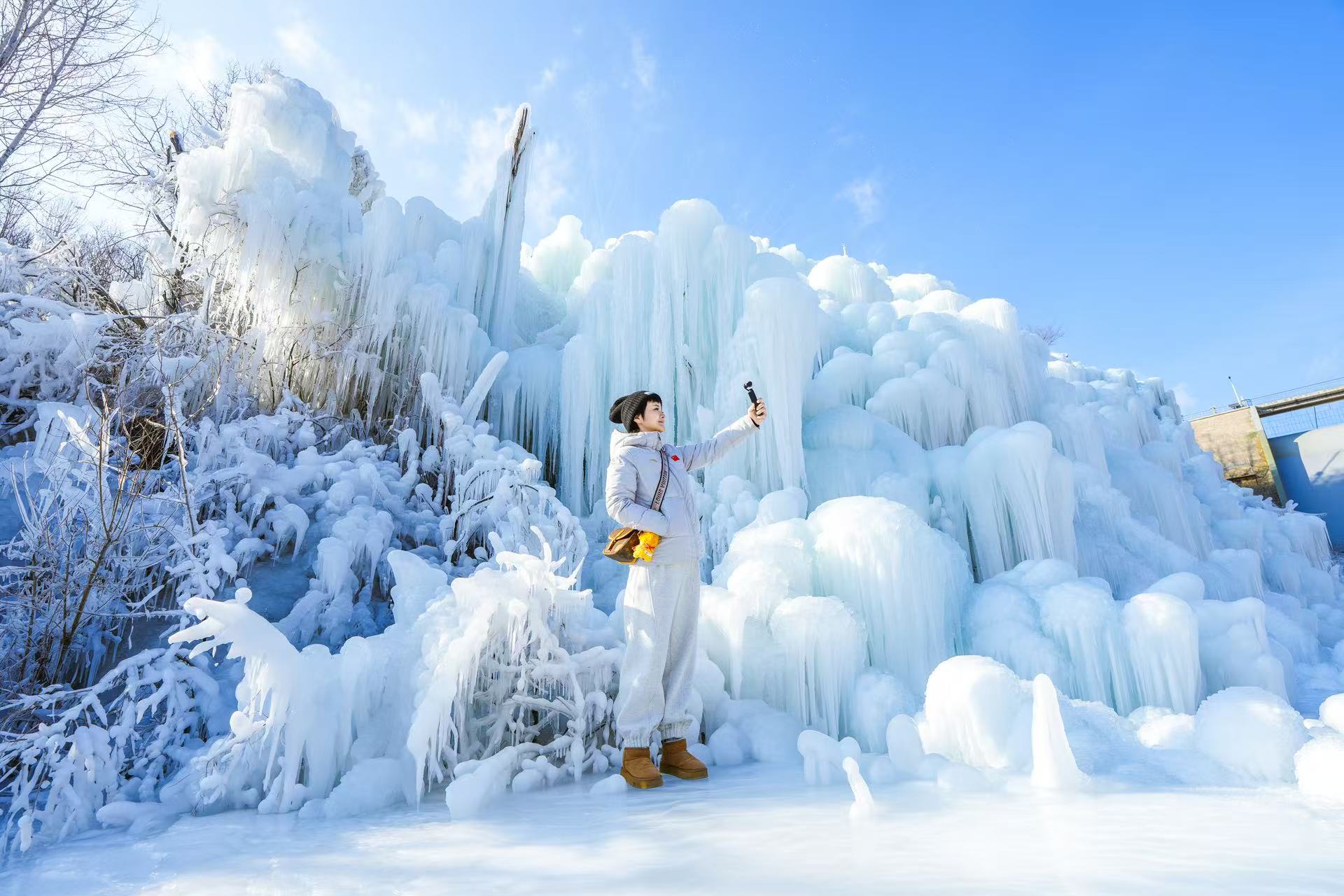 雪后初霁,延庆玉渡山化作一片晶莹剔透的琉璃世界。12月14日,在玉渡山风景区的冰溪峡谷,一道道冰瀑从山崖垂悬而下,凝成玉树琼林般的冰瀑奇观。在冬日暖阳的照射下,冰面泛起淡淡的蓝色光泽,光影流转,格外梦幻。若游赏之余感到寒意,景区内还设有温暖的小屋,可供游客围炉煮茶。